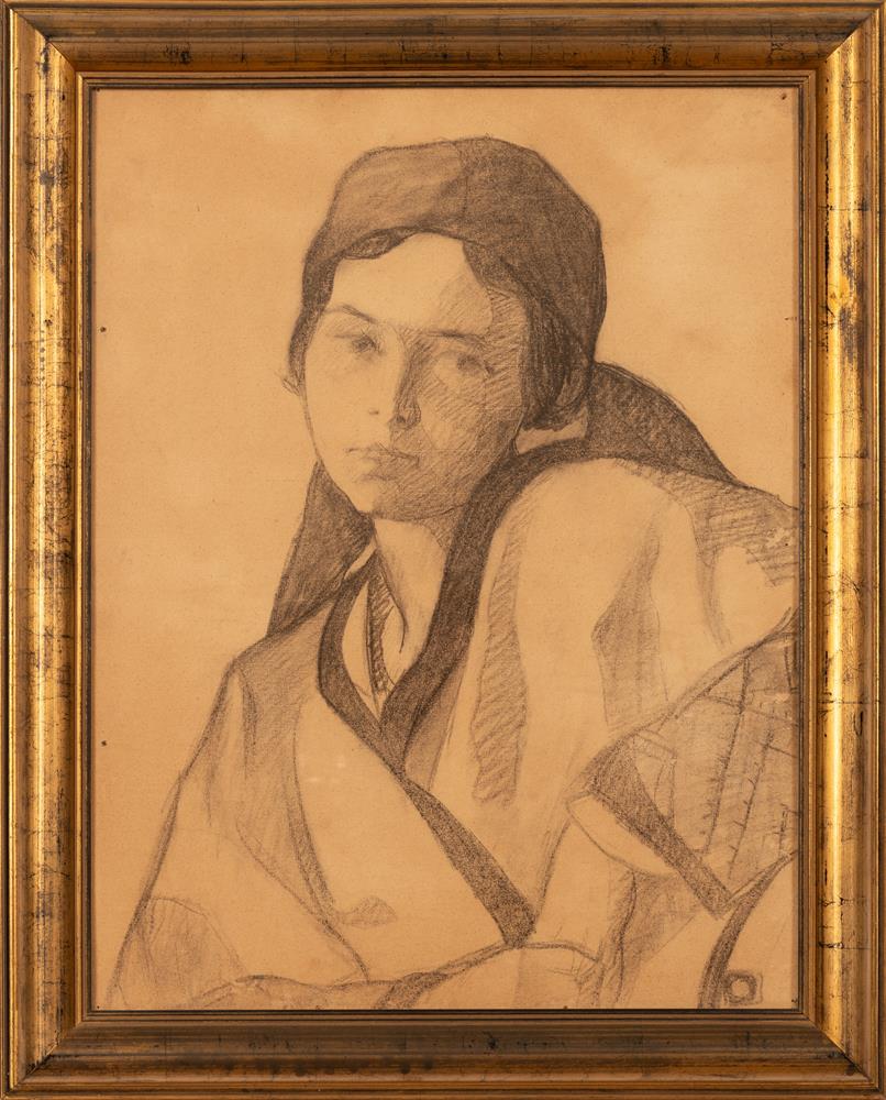 Disegno rappresentantecontadina con fazzoletto in testa Italo De Sanctis (attribuito a)