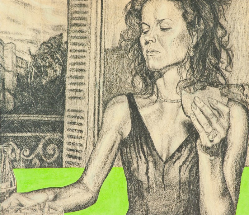 Luca Zampetti (Camerino 1966) LA COLAZIONE MATTUTINA DI LYNN, 2007 Grafite ed encausto su tavola, cm. 70x80 Firma e data in basso a destra. Sul verso: firma, timbro ed etichetta dell'Artista.