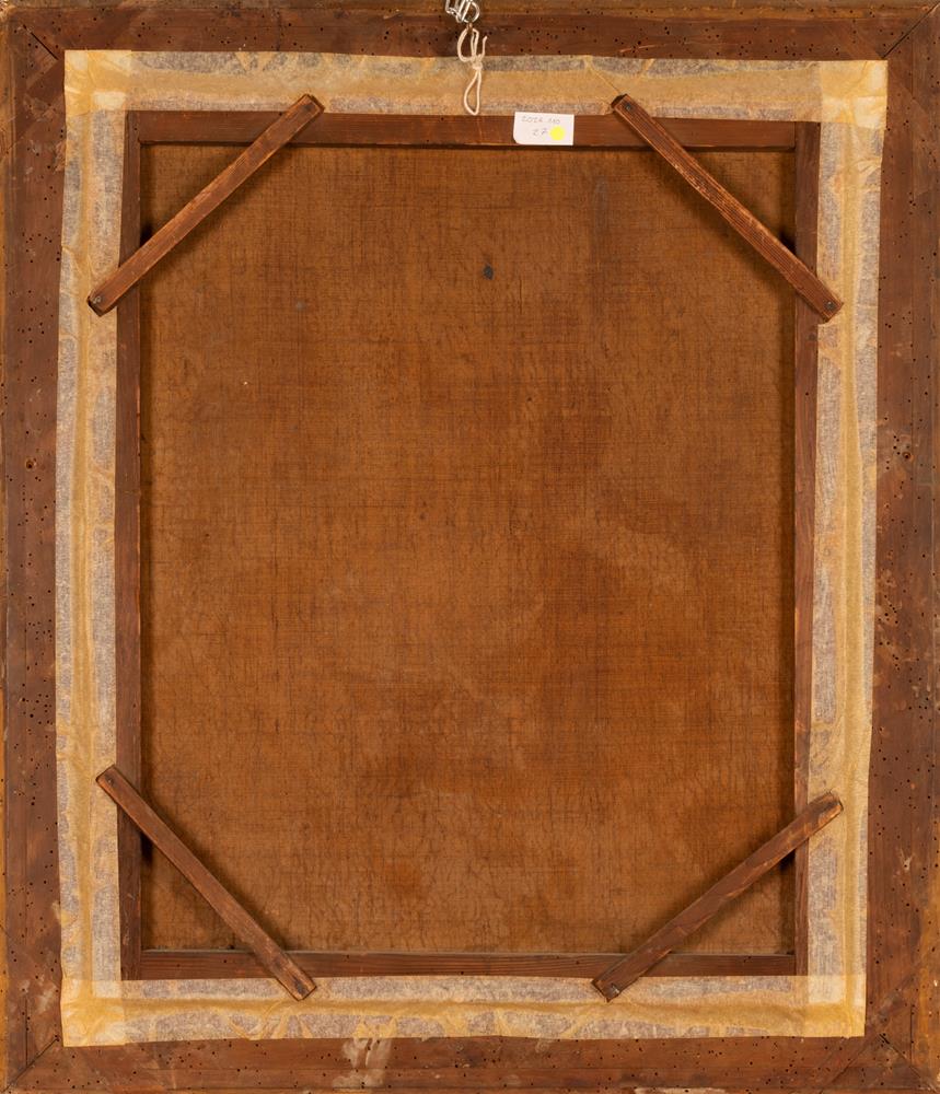 olio su tela cm 63x51; con cornice cm 80,5x68,5 Cornice a cassetta in legno dorato e intagliato con decoro fogliato a rilievo agli angoli della metà del XIX secolo.