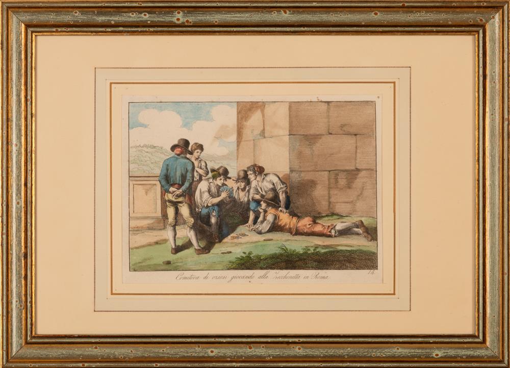 Comitiva di oziosi giocano alla zecchinetta in Roma Bartolomeo Pinelli