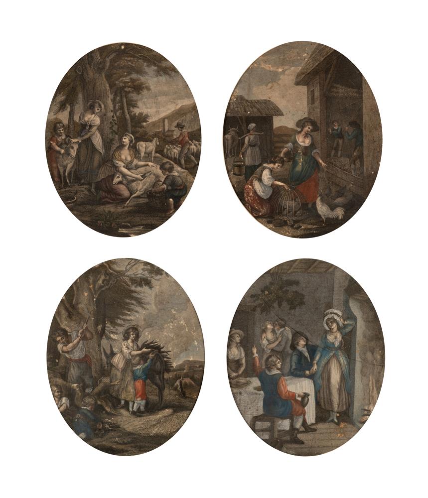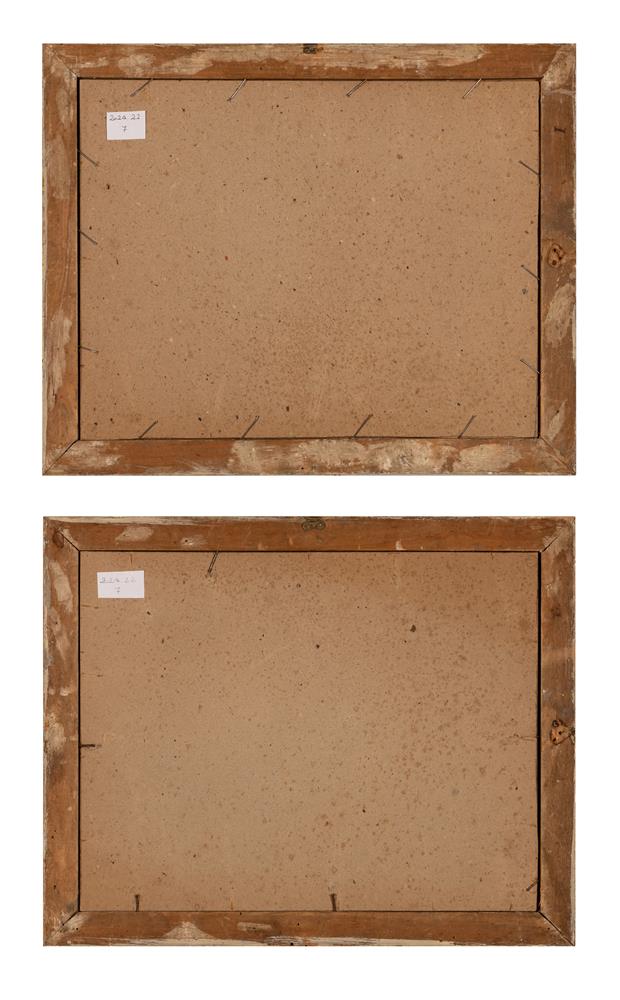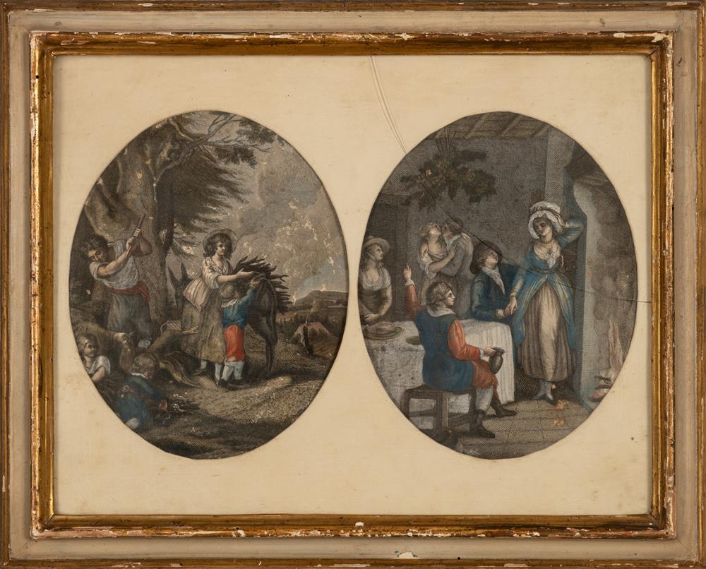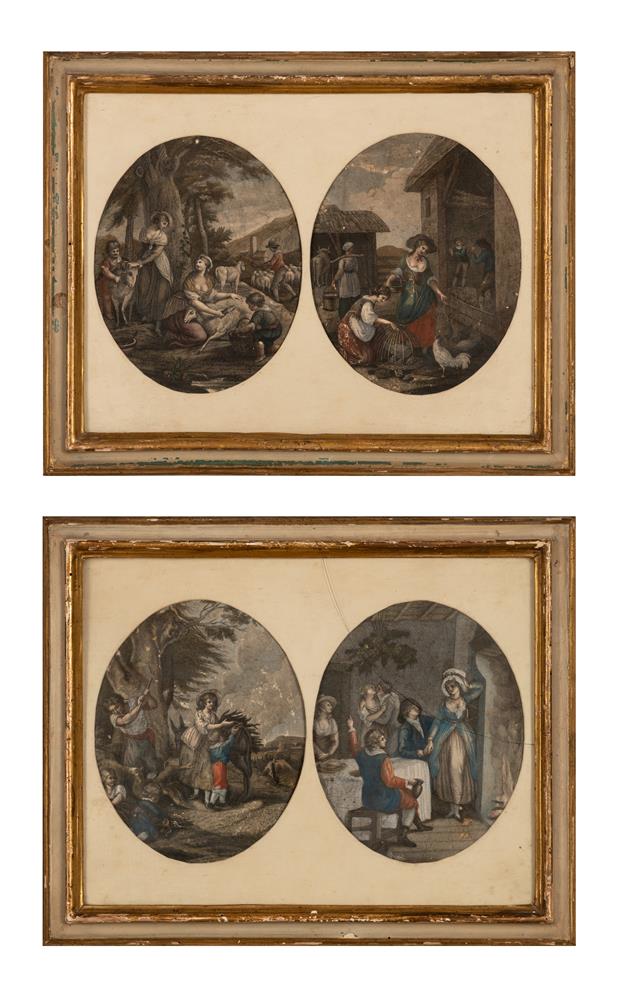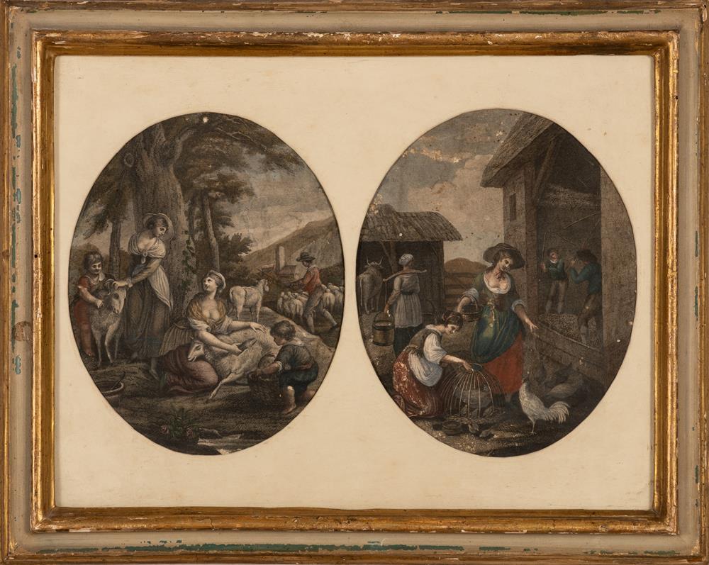 Lotto di due coppie di incisioni ovali in passepartout bianco. Francia, fine del XIX secolo