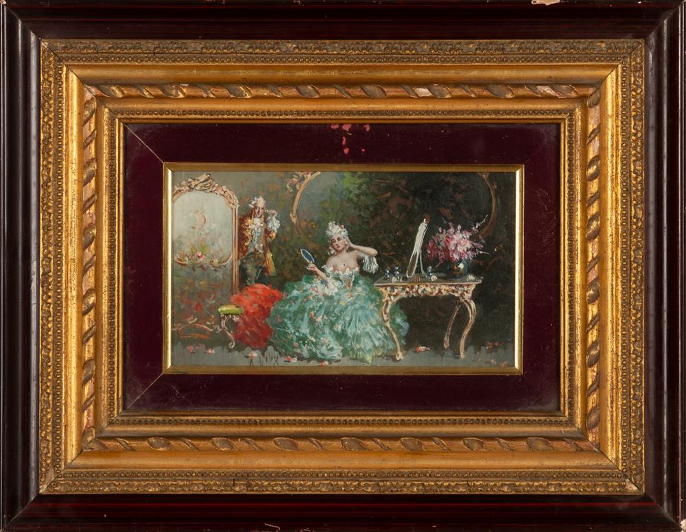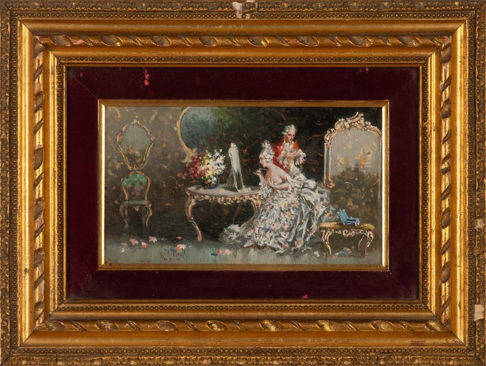 olio su tavoletta 1) cm 12,6x21,1; con cornicecm 26,5x35,3; 2) cm 12,6x21x1; con cornice cm 31,5x40,2 Firmati entrambi R. Zeloni