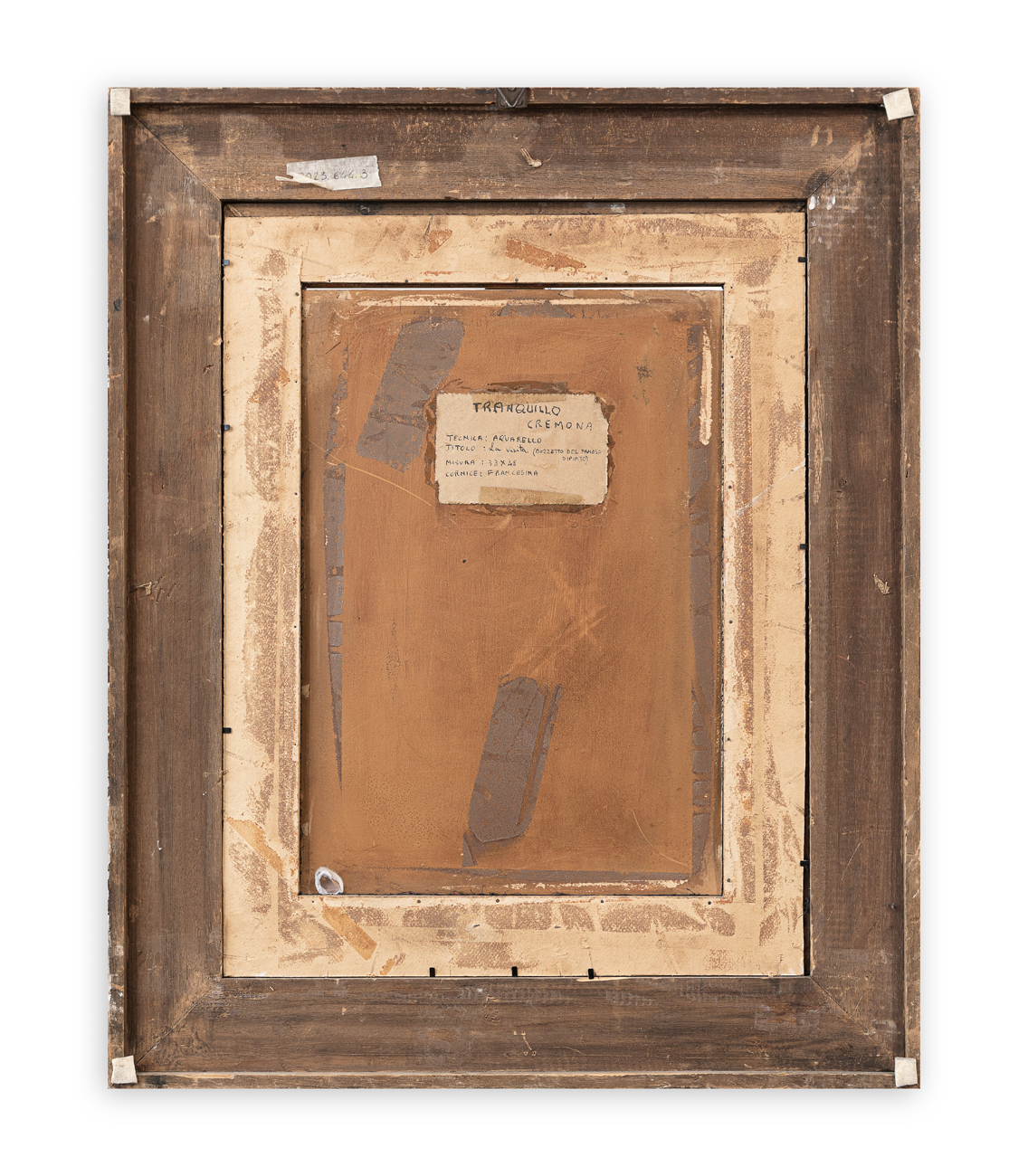 Vecchia etichetta con indicazioni sull'opera al retro