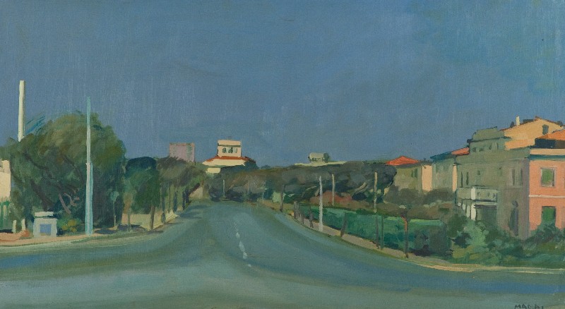 Mario Madiai (Livorno 1944) STRADA Olio su tavola, cm. 50x90 Firmato in basso a destra.