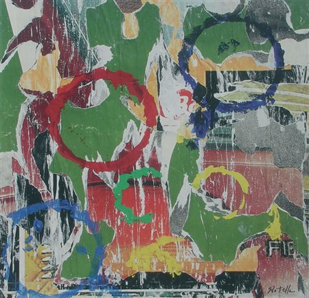 Rotella Mimmo Giochi sardi, 1990 decollage su tela, cm. 80x78 firmato in...