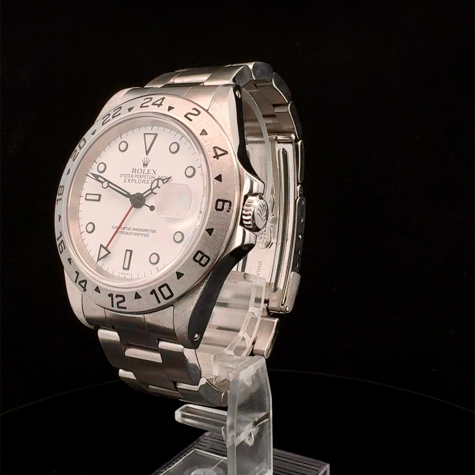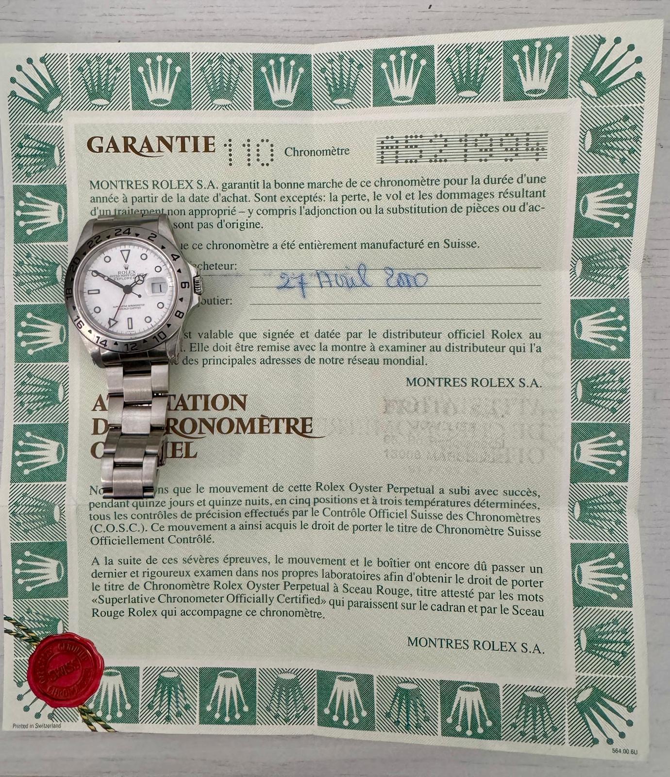 Marca Rolex Modello (Orologio) Explorer II Numero di referenza 16570 only swiss Carica Automatico Materiale della cassa Acciaio Materiale cinturino Acciaio Anno di produzione 99/2000 Corredo documenti originali Rolex, no box Calibro Carica Automatico Materiale della cassa Acciaio Diametro 40 mm Impermeabile 10 ATM Materiale lunetta Acciaio Vetro Vetro zaffiro Quadrante Bianco Numeri sul quadrante Senza numeri Cinturino Materiale cinturino Acciaio Colore cinturino Acciaio Chiusura Déployante Materiale chiusura Acciaio