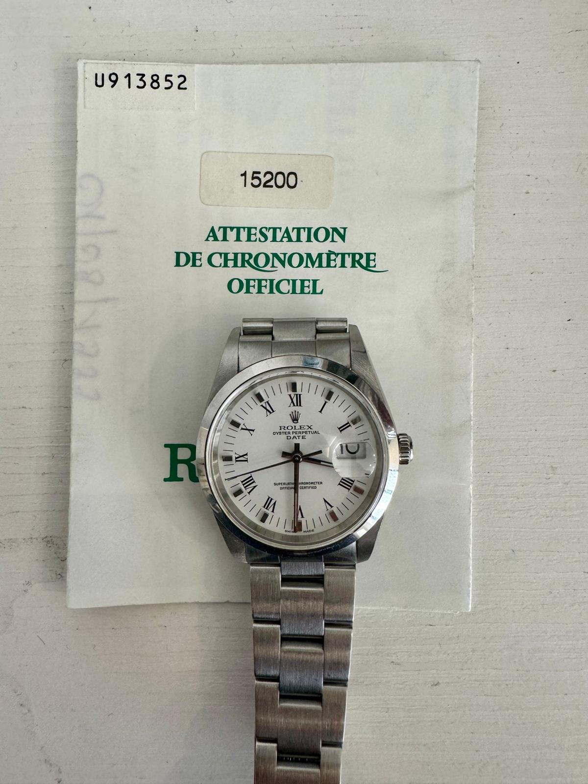 Marca Rolex Modello (Orologio) Oyster Perpetual Date Numero di referenza 15200 Carica Automatico Materiale della cassa Acciaio Materiale cinturino Acciaio Anno di produzione 1999 Condizione Usato (Buono) documenti originali, no box Carica Automatico Cassa Materiale della cassa Acciaio Diametro 34 mm Cinturino Materiale cinturino Acciaio Colore cinturino Acciaio