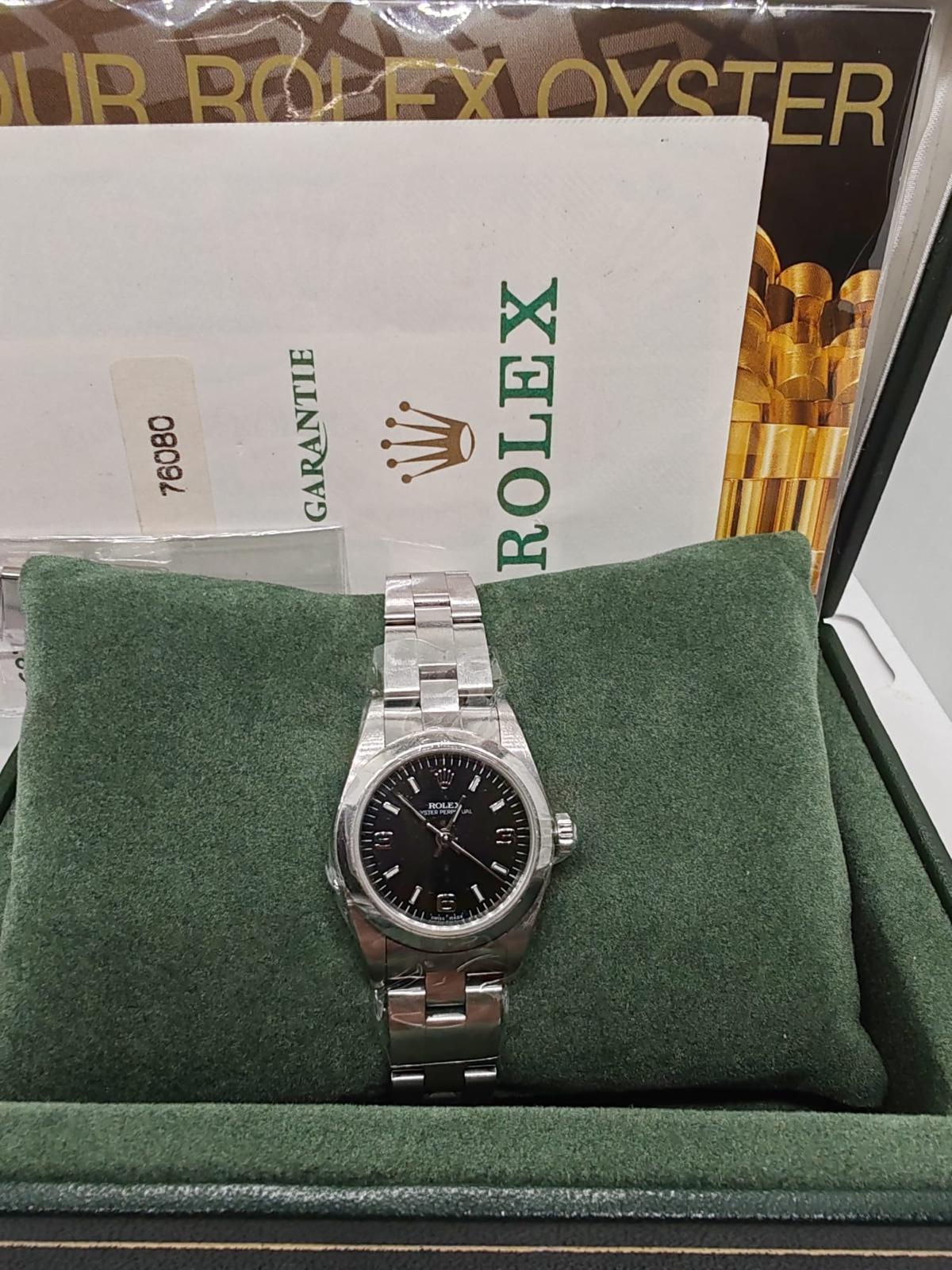 Marca Rolex Modello (Orologio) Oyster Perpetual Numero di referenza 76080 Carica Automatico Materiale della cassa Acciaio Materiale cinturino Acciaio Anno di produzione 2000 Condizione Usato (Ottimo) L'articolo presenta segni di usura lievi, come ad esempio graffi leggeri, ma non percepibili al tatto. Corredo Senza scatola originale, con documenti originali Materiale della cassa Acciaio Diametro 24 x 27 mm Materiale lunetta Acciaio Vetro Vetro zaffiro Cinturino Materiale cinturino Acciaio Colore cinturino Acciaio Chiusura Déployante Materiale chiusura Acciaio