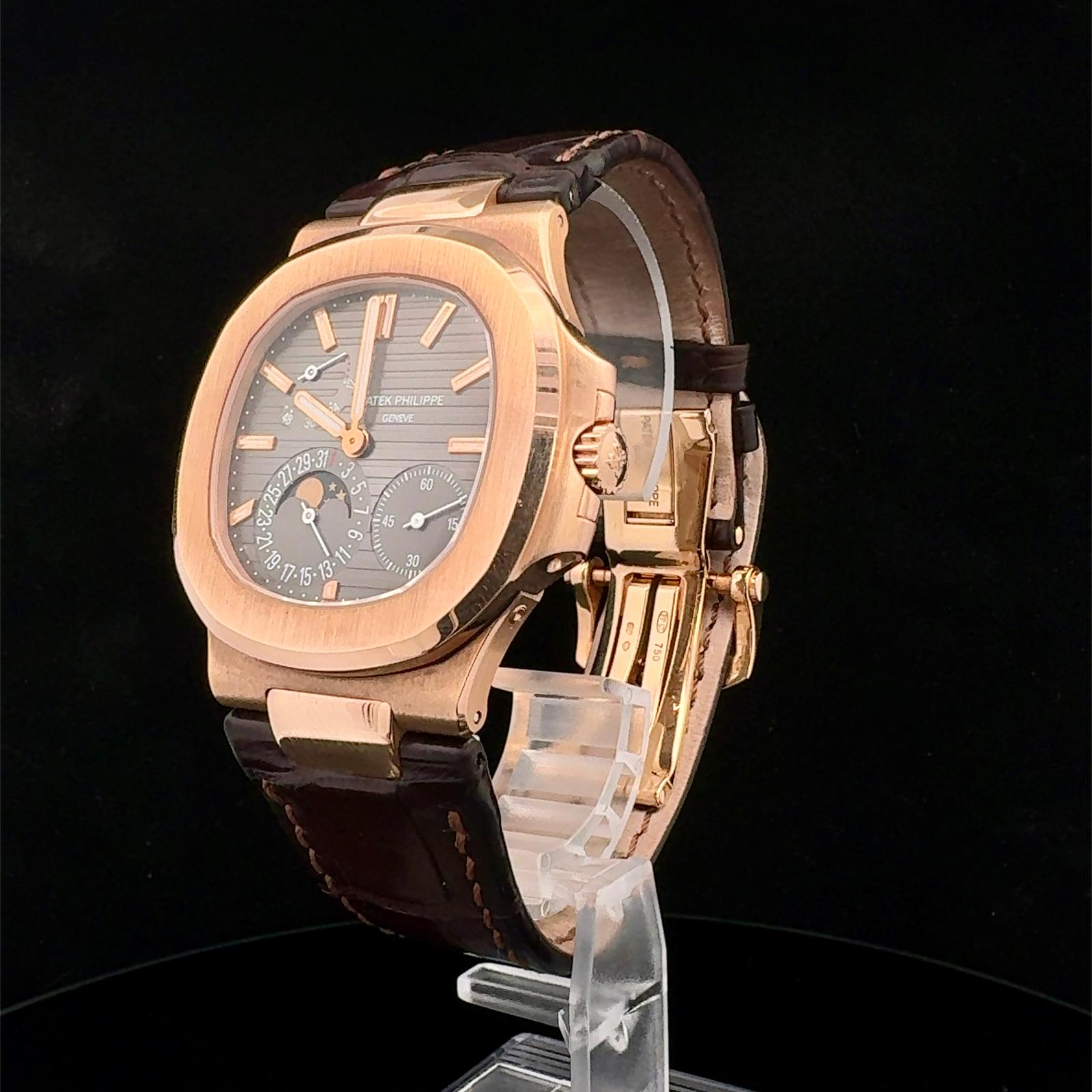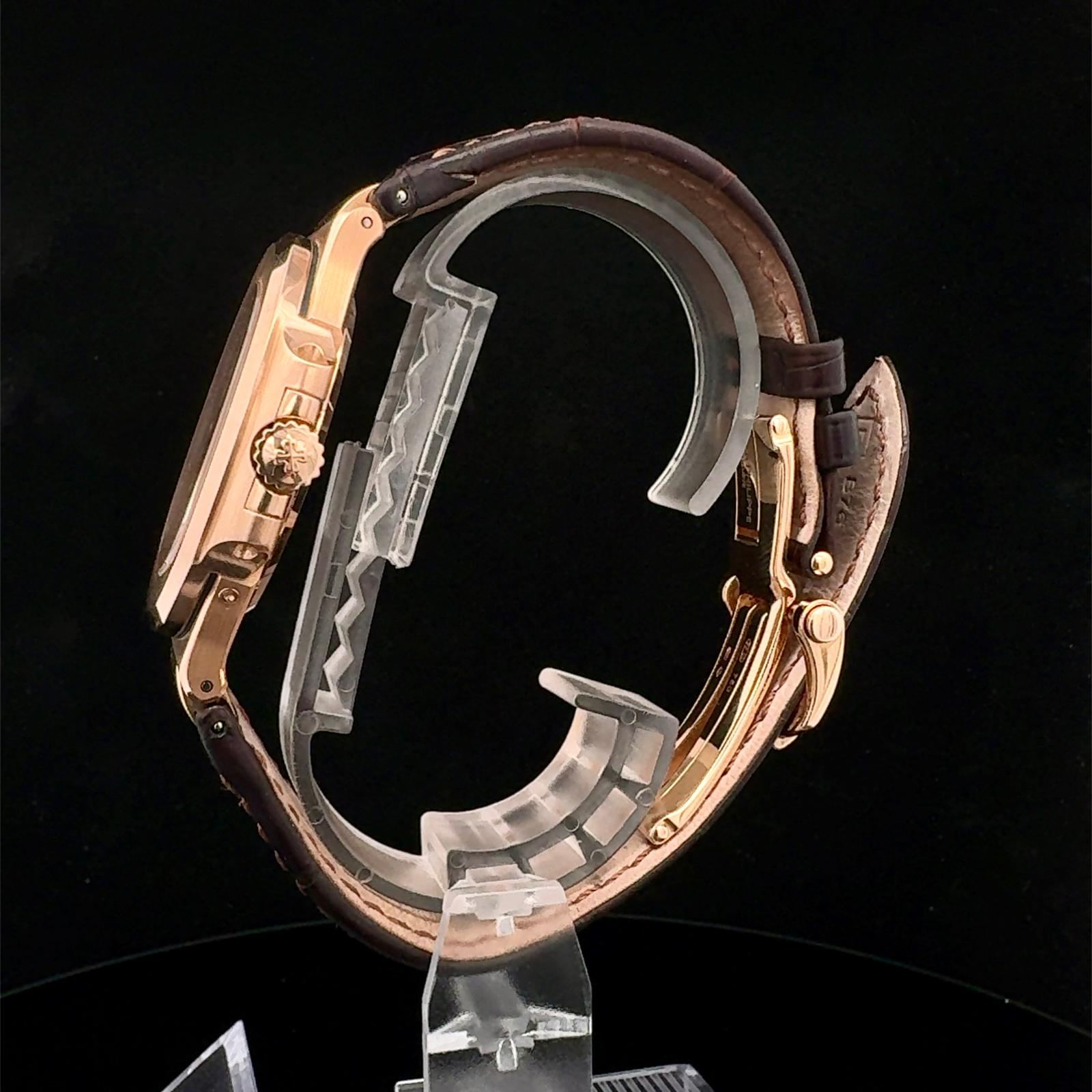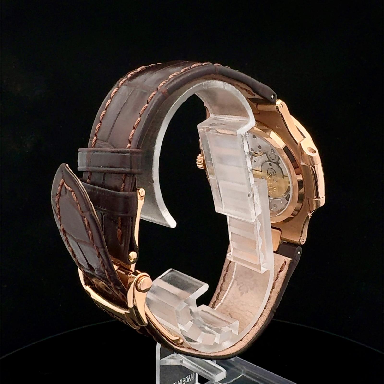 Marca Patek Philippe Modello (Orologio) Nautilus Numero di referenza 5712GR-001 Carica Automatico Materiale della cassa Oro rosa Materiale cinturino Pelle di coccodrillo Anno di produzione 2010 Condizione Ottimo (di seconda mano, segni di usura assenti o appena visibili) Corredo Con scatola originale e documenti originali Calibro Carica Automatico Cassa Materiale della cassa Oro rosa Diametro 40 x 38 mm Impermeabile 6 ATM Materiale lunetta Oro rosa Vetro Vetro zaffiro Cinturino Materiale cinturino Pelle di coccodrillo Colore cinturino Marrone Chiusura Déployante Materiale chiusura Oro rosa Funzioni Fasi lunari, Data Altro Fondello trasparente, Piccoli secondi, Riserva di carica