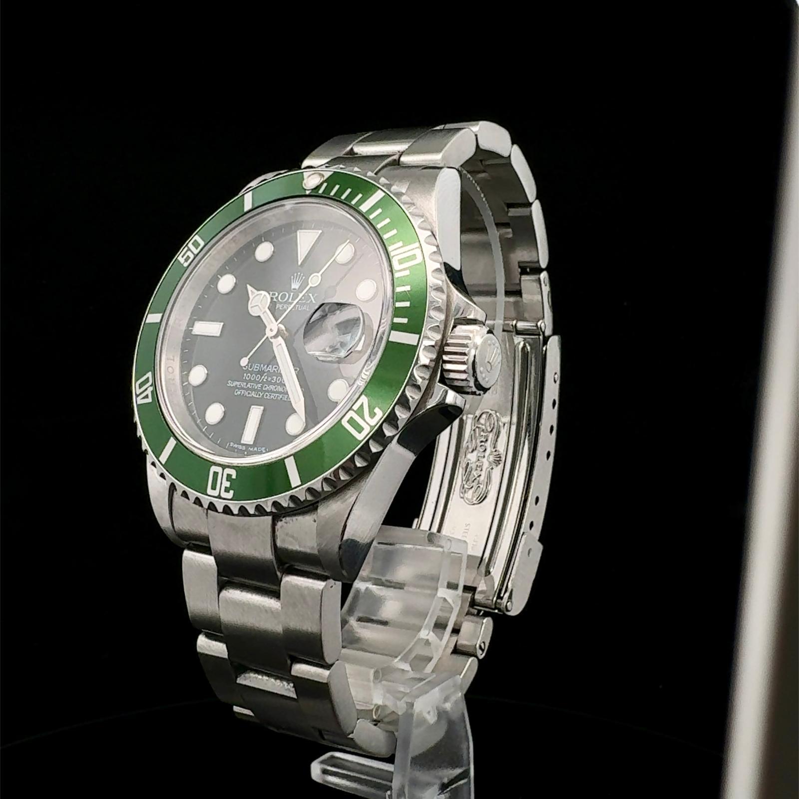 Marca Rolex Modello (Orologio) Submariner Date Numero di referenza 16610LV Carica Automatico Materiale della cassa Acciaio Materiale cinturino Acciaio Anno di produzione 2007/10 Condizione Usato (Ottimo) L'articolo presenta segni di usura lievi, come ad esempio graffi leggeri, ma non percepibili al tatto. documenti originali card Rolex, no box Materiale della cassa Acciaio Diametro 40 mm Impermeabile 30 ATM Materiale lunetta Acciaio Vetro Vetro zaffiro Quadrante Nero Numeri sul quadrante Senza numeri Cinturino Materiale cinturino Acciaio Colore cinturino Acciaio Chiusura Déployante Materiale chiusura Acciaio
