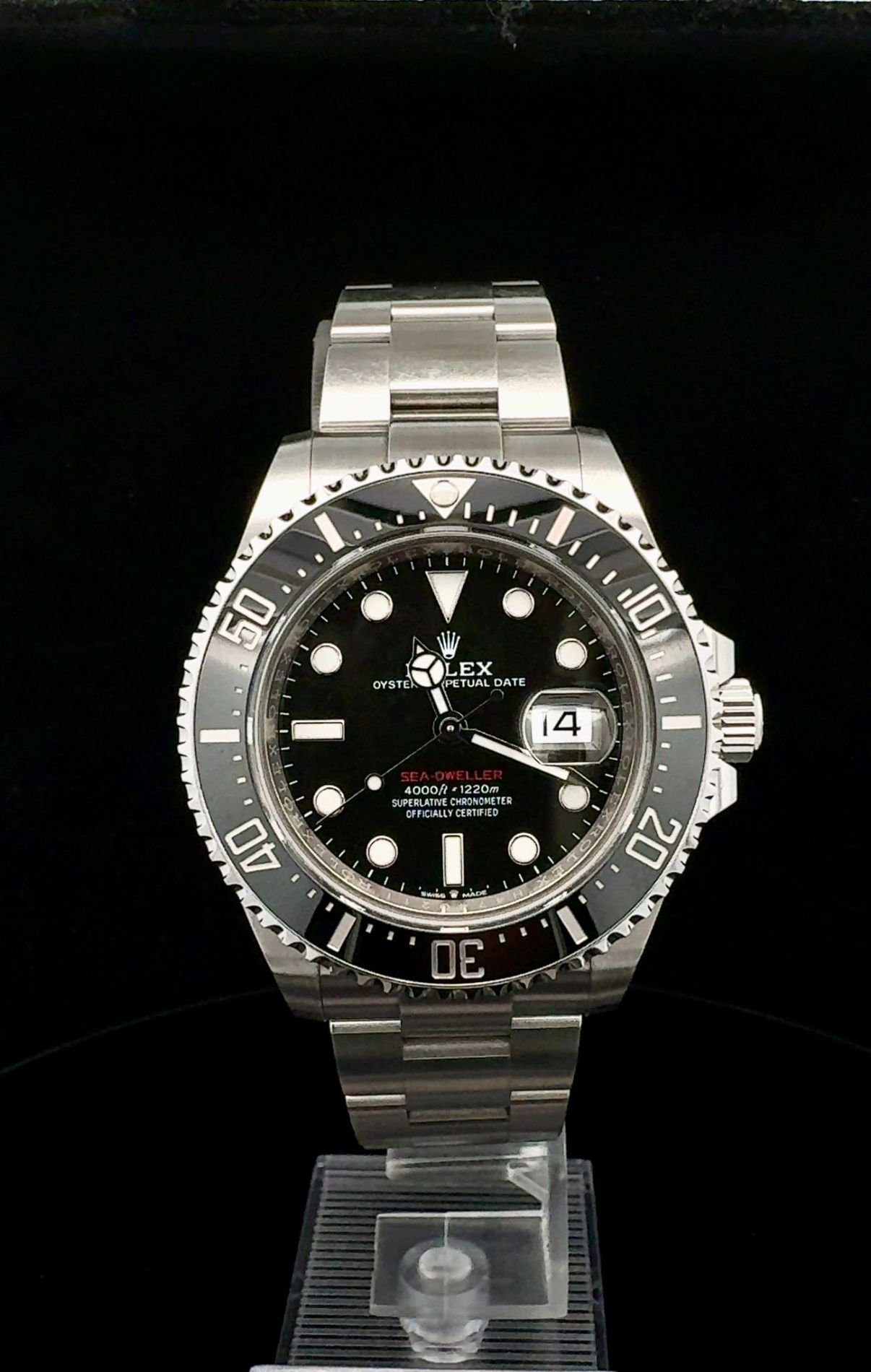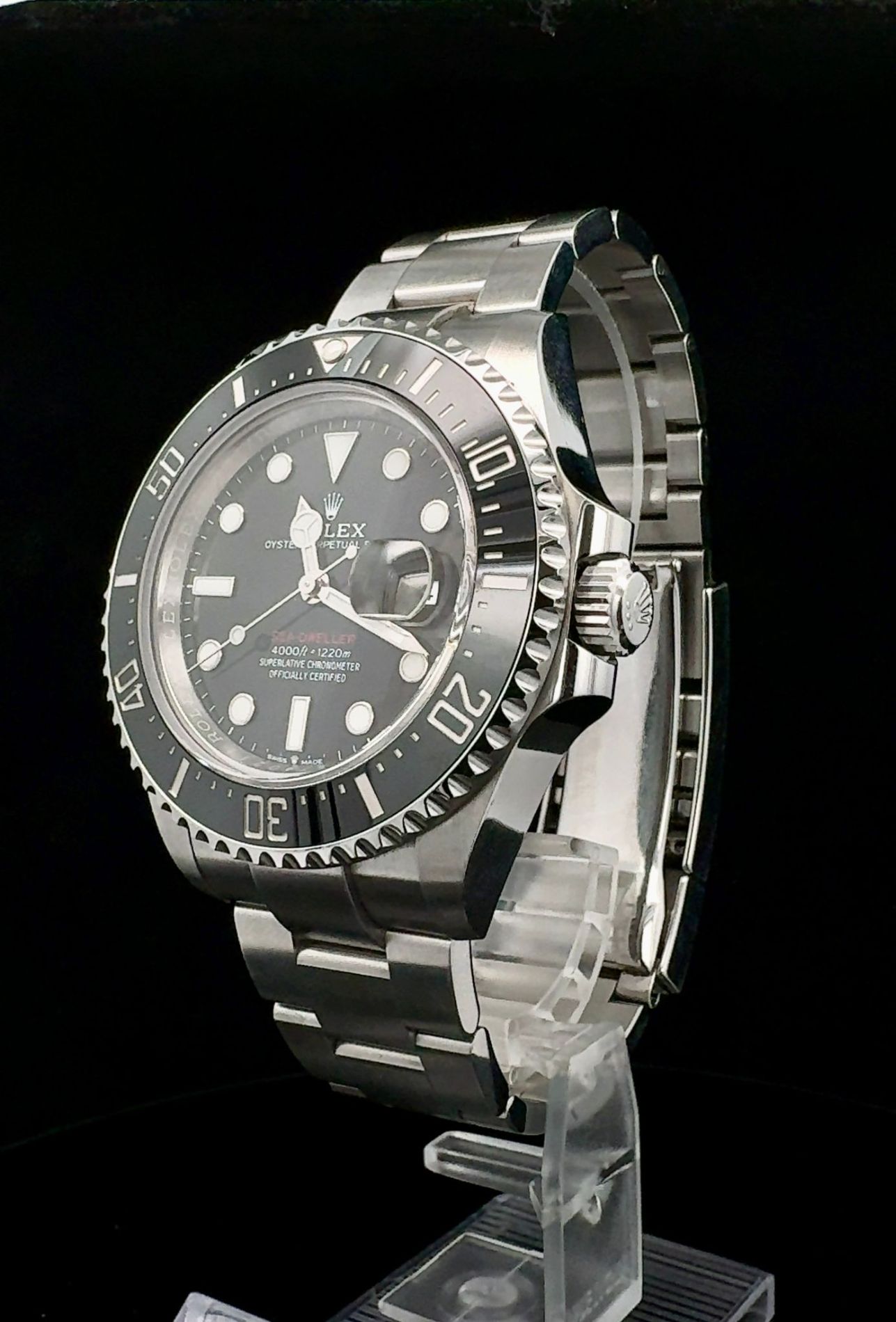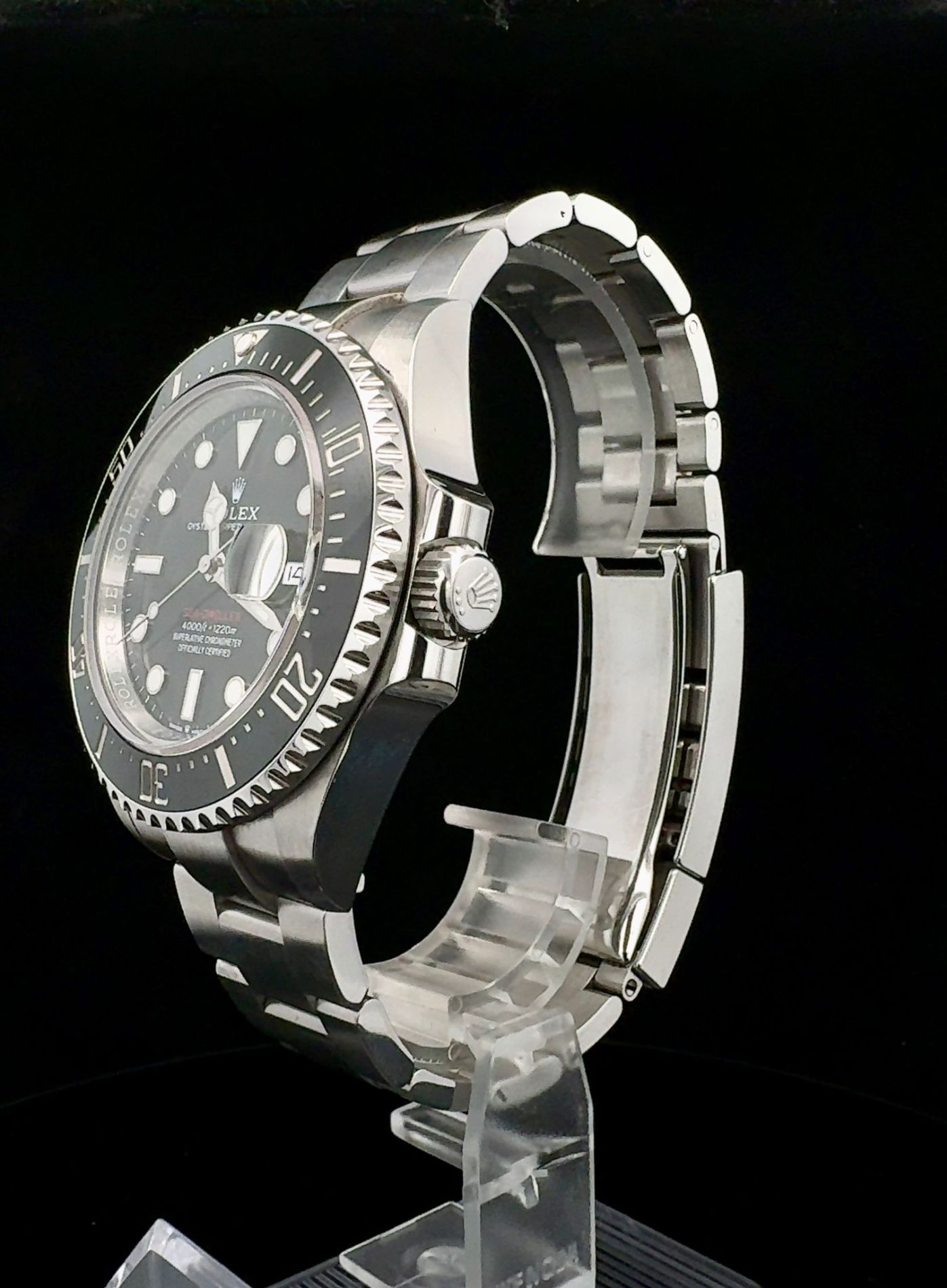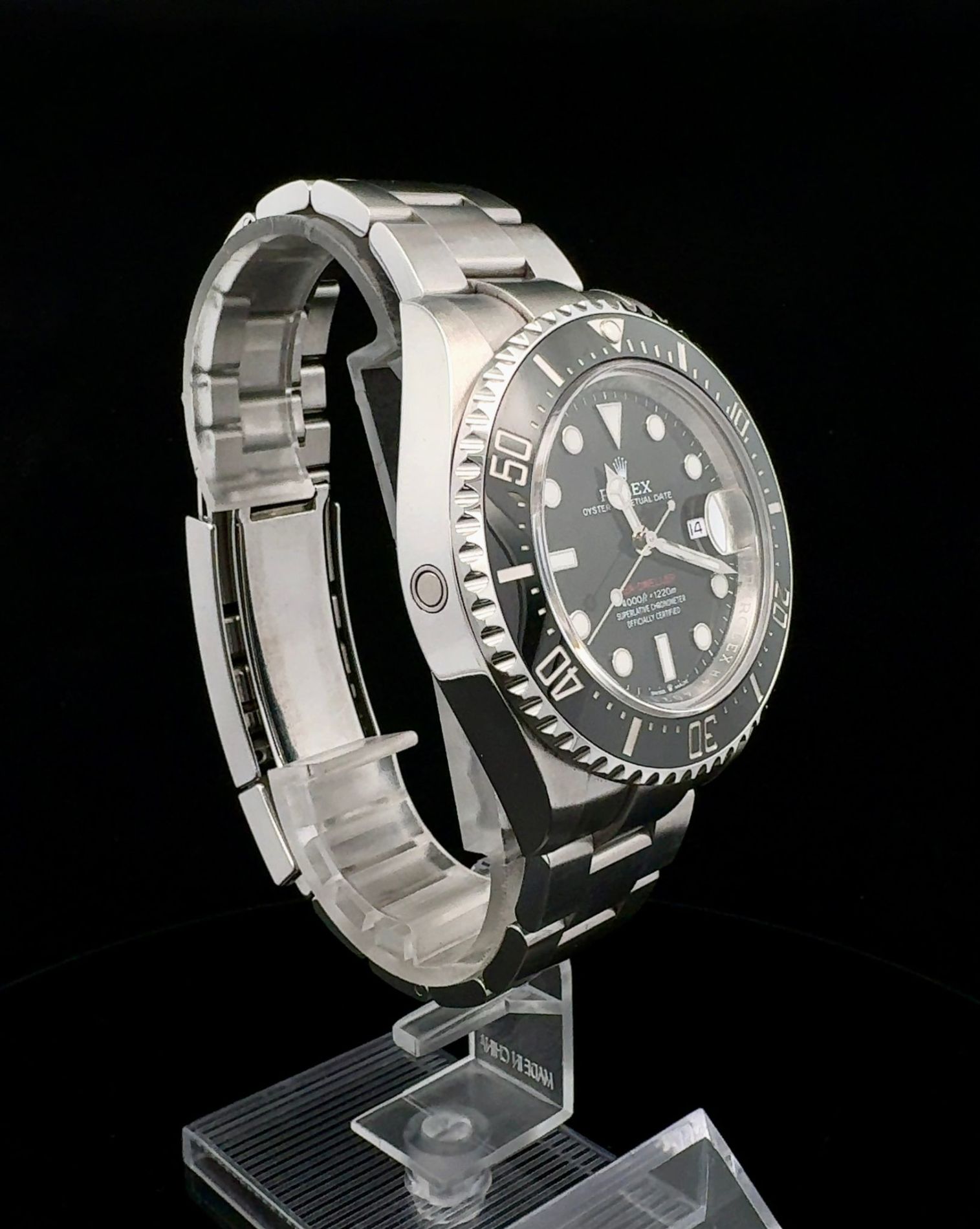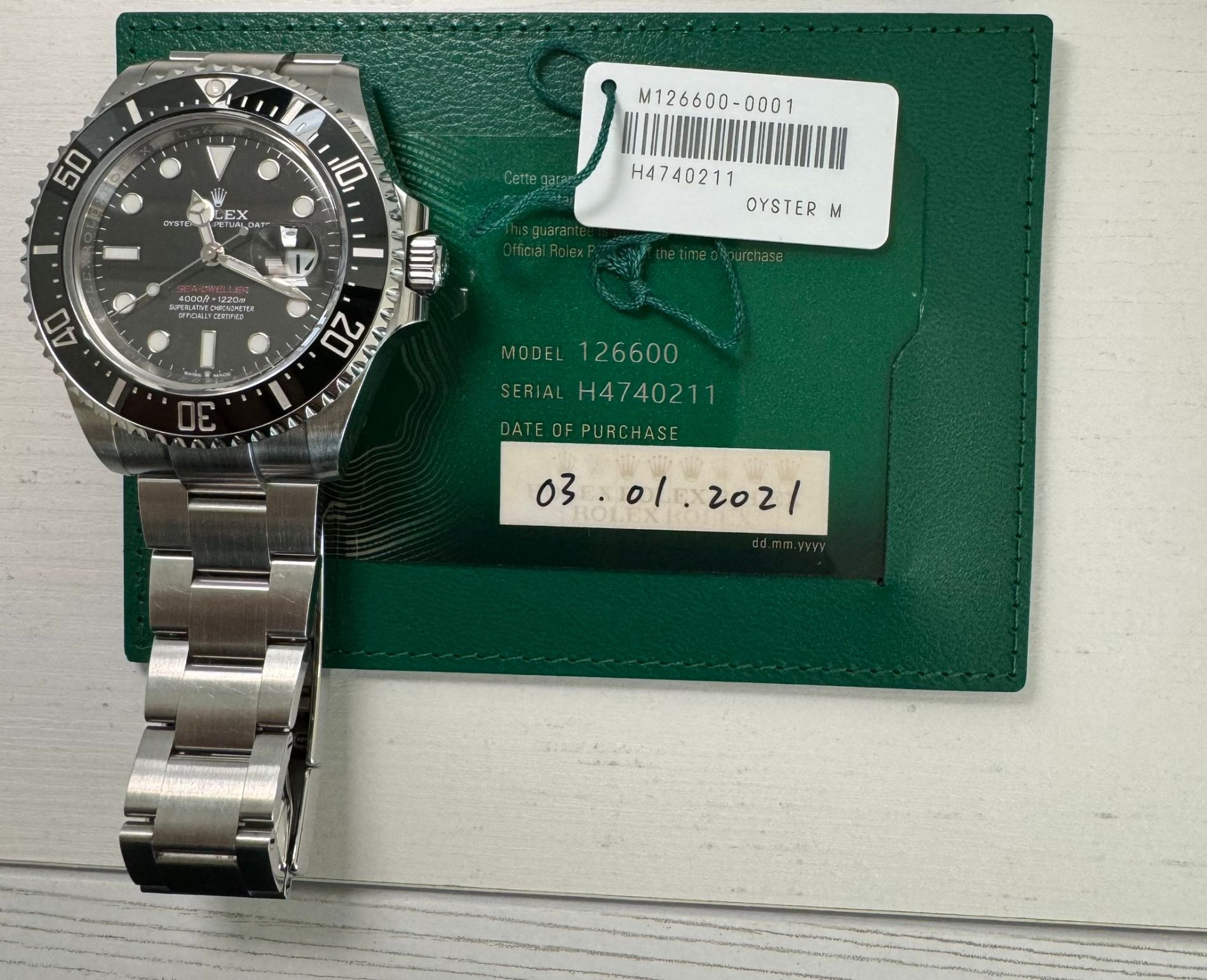 Marca Rolex Modello (Orologio) Sea-Dweller Numero di referenza 126600 Carica Automatico Materiale della cassa Acciaio Materiale cinturino Acciaio Anno di produzione 2021 Condizione Usato (Ottimo) L'articolo presenta segni di usura lievi, come ad esempio graffi leggeri, ma non percepibili al tatto. Corredo documenti originali, no box Carica Automatico Cassa Materiale della cassa Acciaio Diametro 43 mm Impermeabile Oltre i 120 ATM Materiale lunetta Ceramica Vetro Vetro zaffiro Quadrante Nero Numeri sul quadrante Senza numeri Cinturino Materiale cinturino Acciaio Colore cinturino Acciaio Chiusura Déployante Materiale chiusura Acciaio Funzioni Data