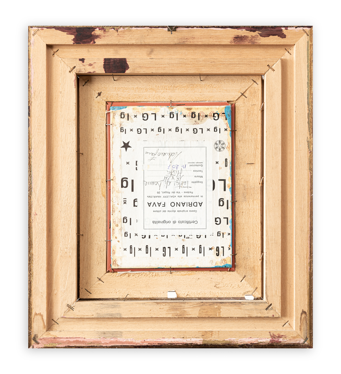 Etichetta con firma e caratteristiche tecniche dell'opera al retro