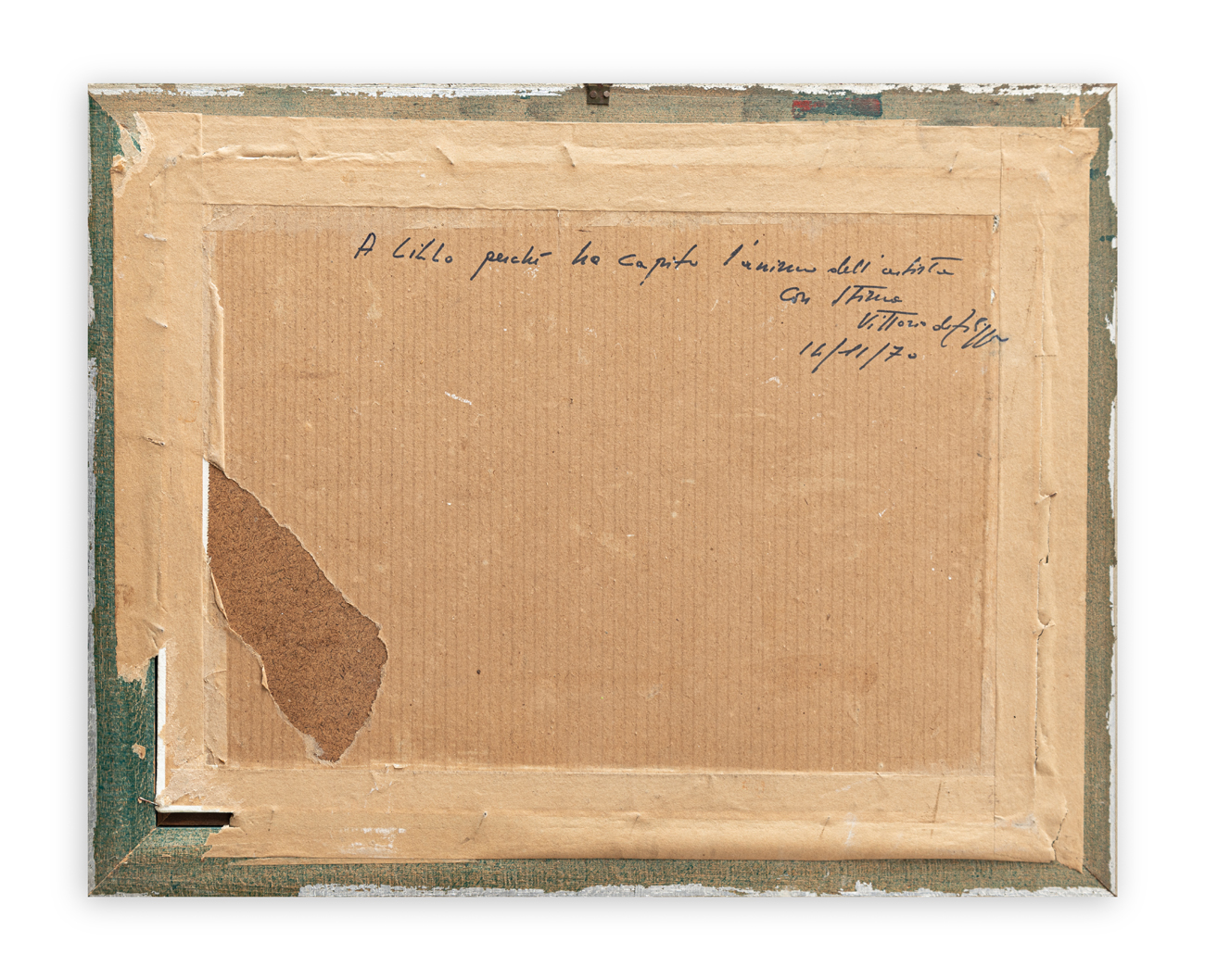 Firma e dedica ad personam al retro del cartone protettivo