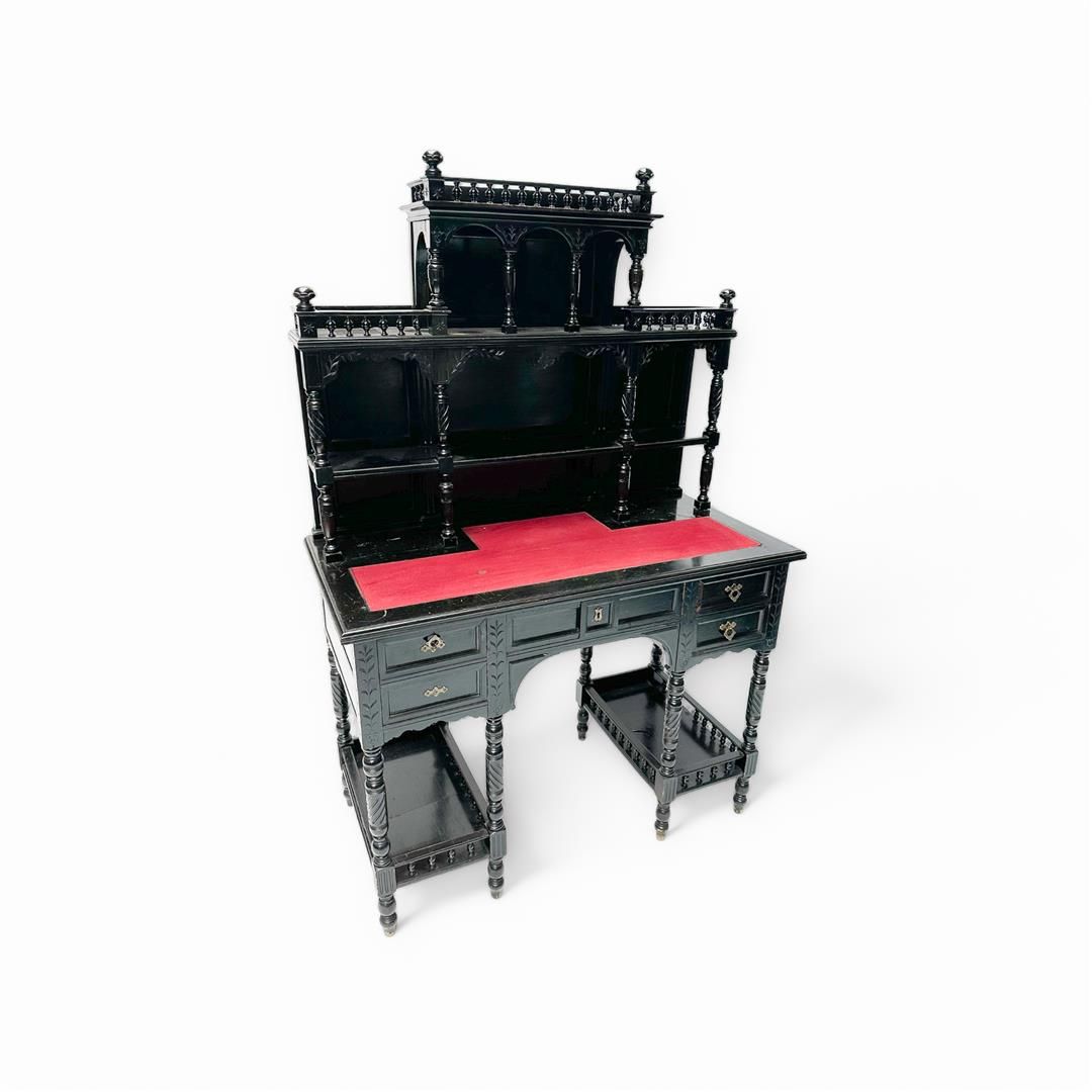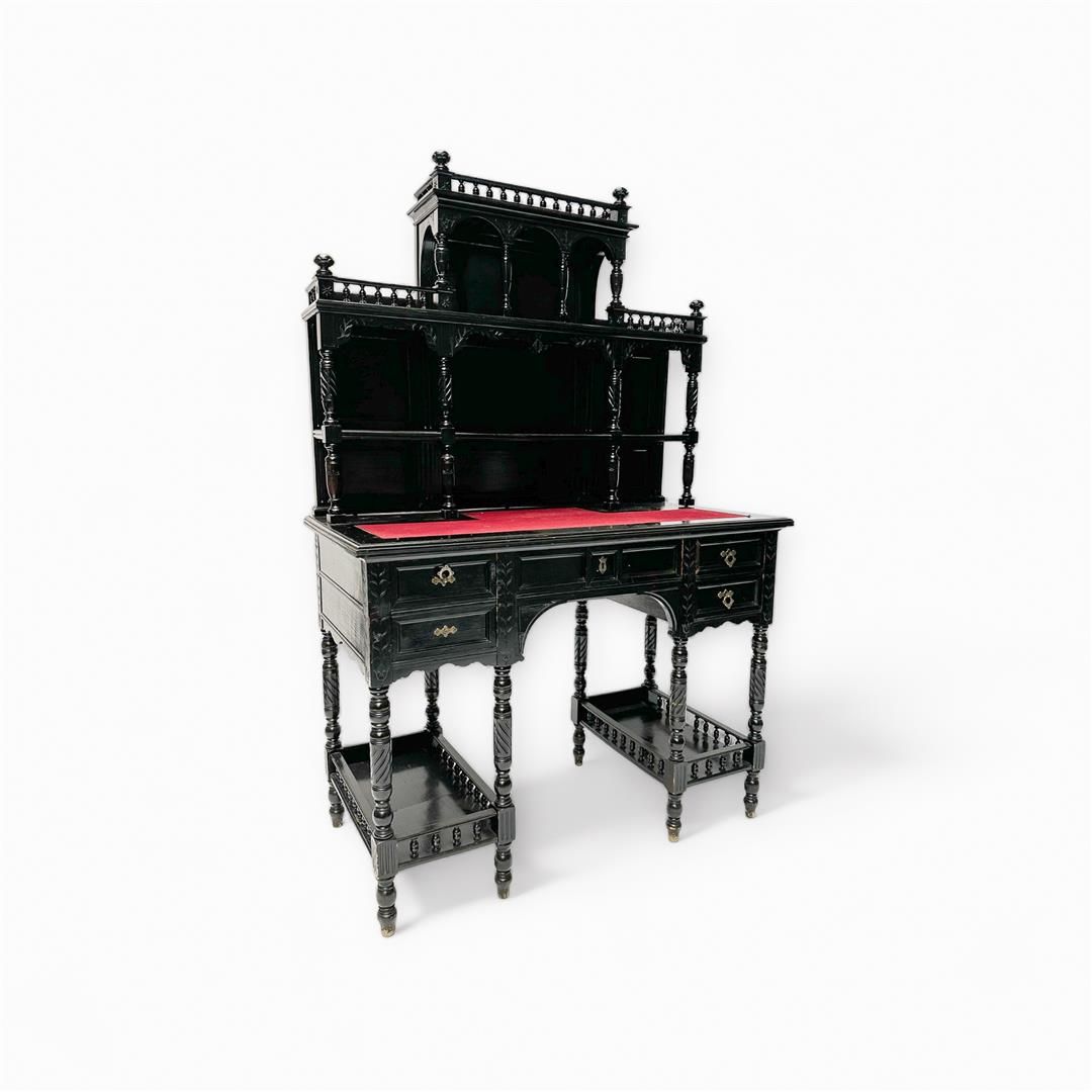 A blackened wooden secretary on turned legs. France ca. 1900.