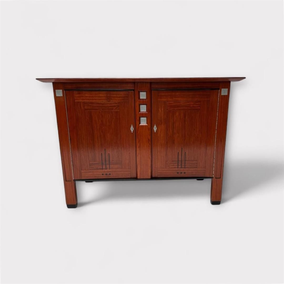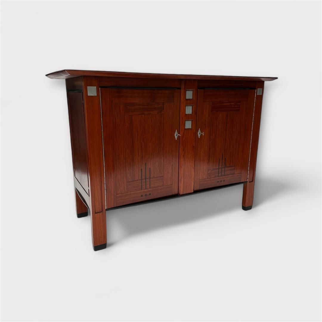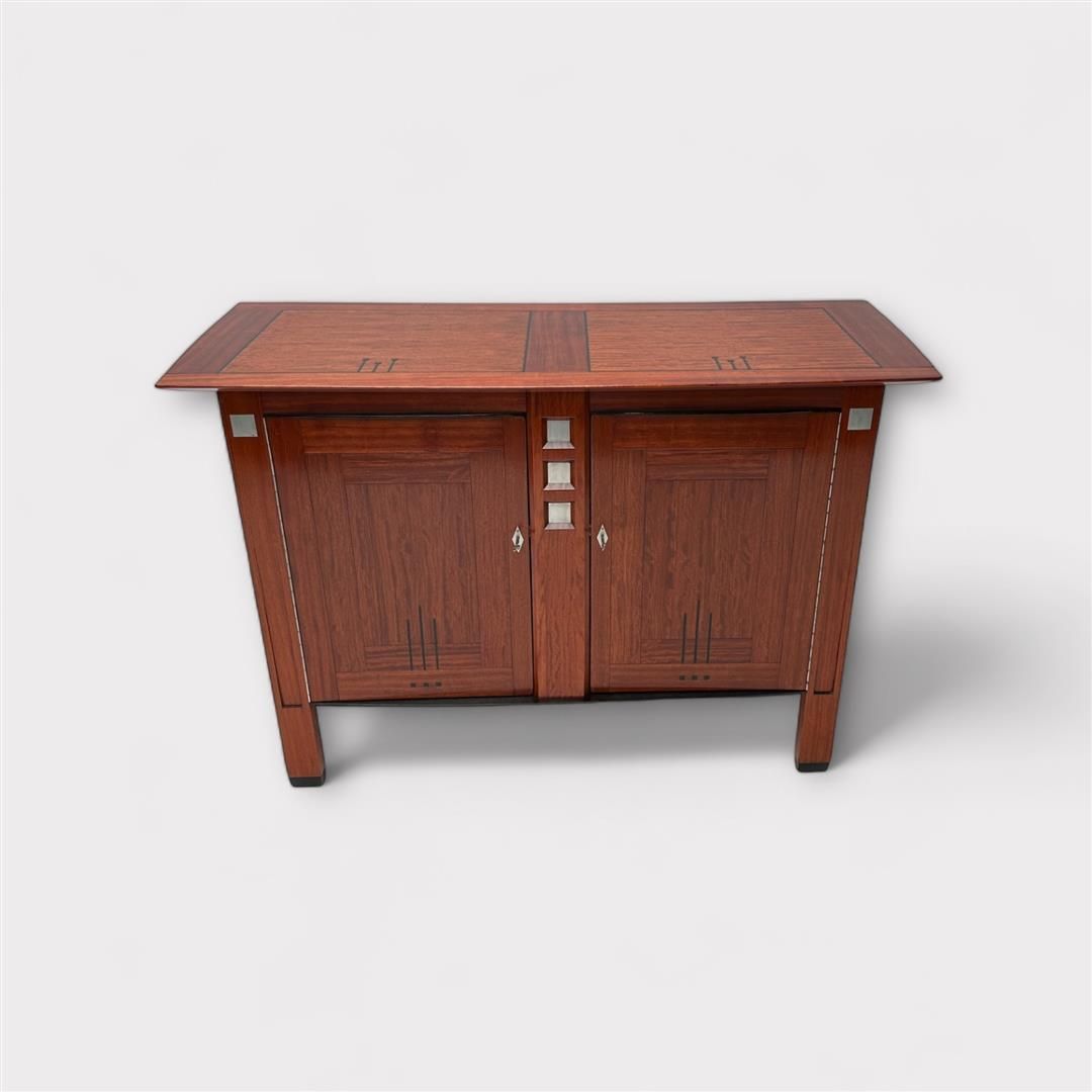 An Art Deco style Schuitema Decoforma buffet / sideboard made of various types of wood including rosewood or bubinga, with ebony and aluminum details. Numbered '904 IIB'