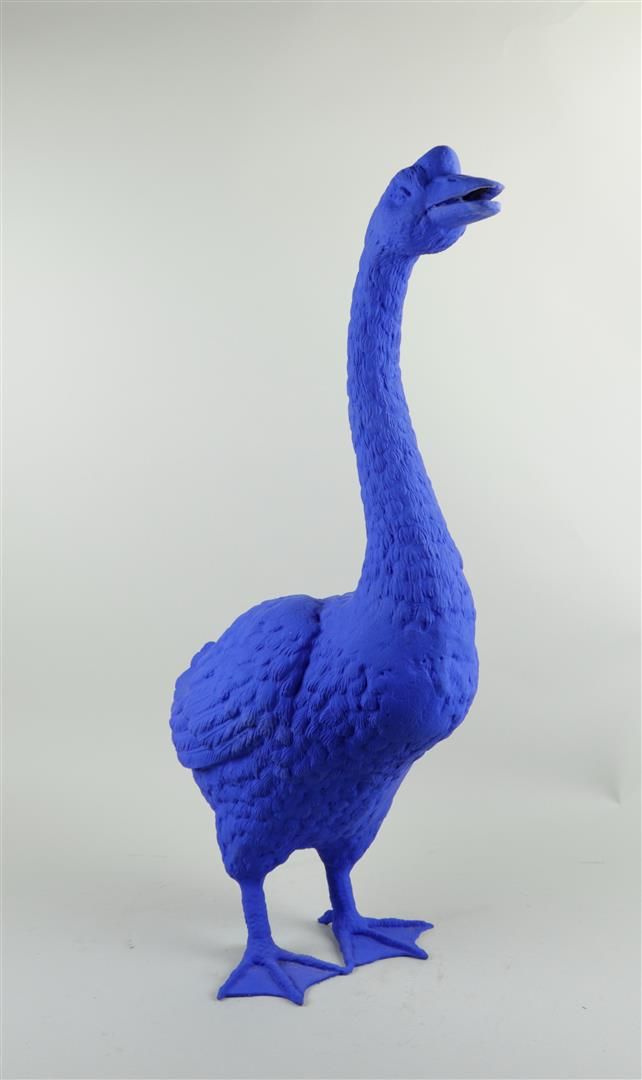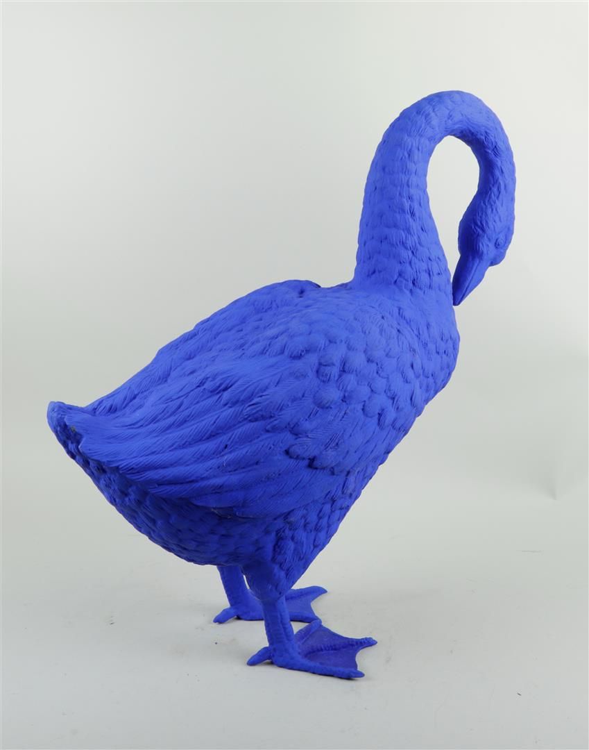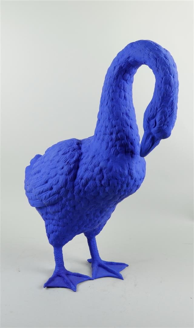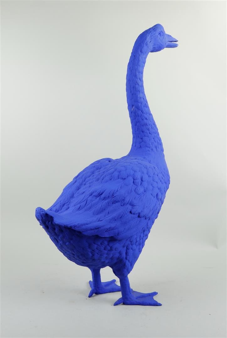 A set of two bronze geese in YKB Ultramarine blue. H. 72 & 55 cm.