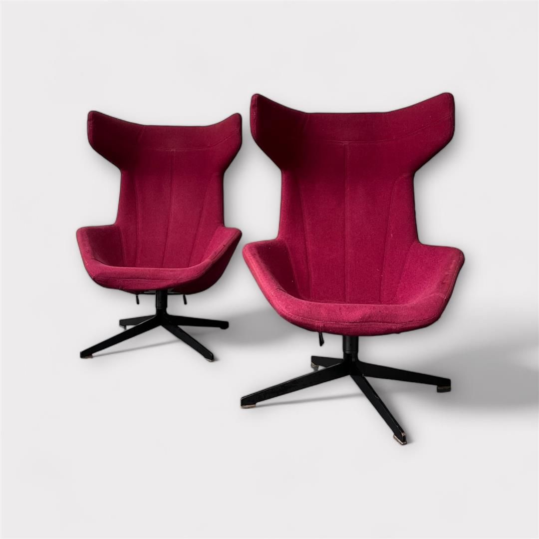 A set of (4) Morosso Italy, "Take a Line for a Walk" lounge chairs on black base, designed by Alfredo Häberli, swivel.Height: 110 cm.,Width: 85 cm., Depth: 90 cm., Seat height 42 cm.