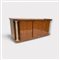 A high-gloss lacquered sideboard with tempered glass with three doors flanked...
