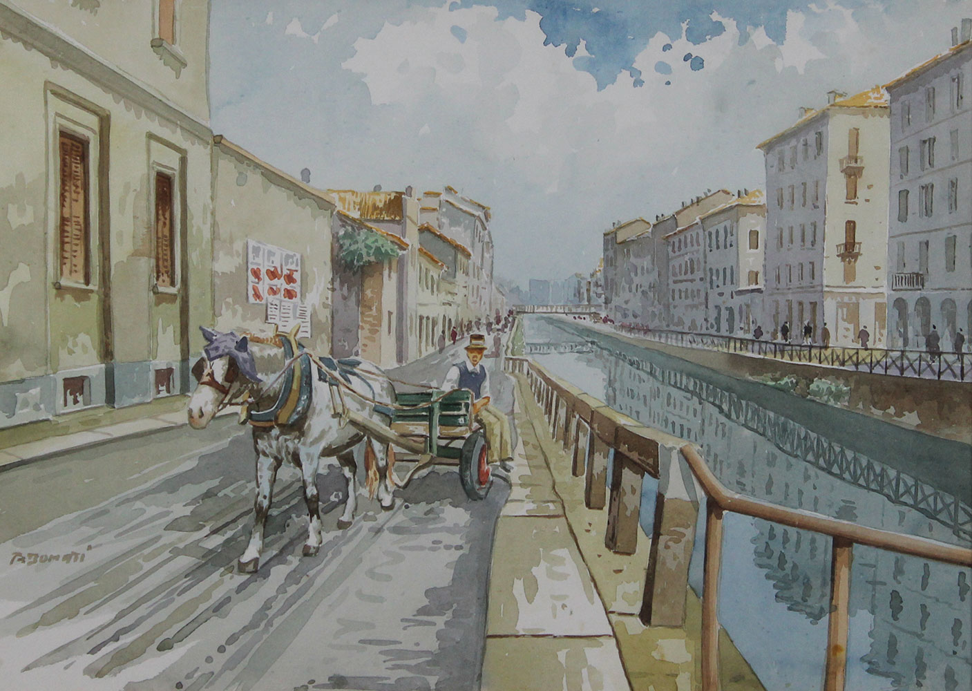 Donati Bisio Carretto sul Naviglio acquerello su carta, cm. 35x49 firmato in basso a sinistra, certificato di garanzia e autenticità della Galleria Mimmo Massante di Milano senza cornice