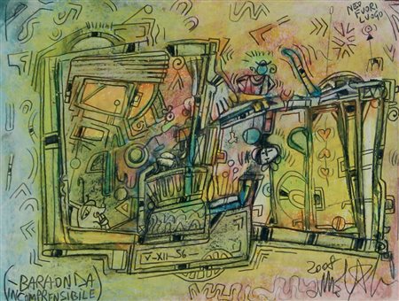 Delego Martino Baraonda Incomprensibile, 2008 tecnica mista su carta, cm. 27x35 firmata e datata in basso a destra, intitolata in basso a sinistra, certificato di autenticità dell'artista su fotografia senza cornice