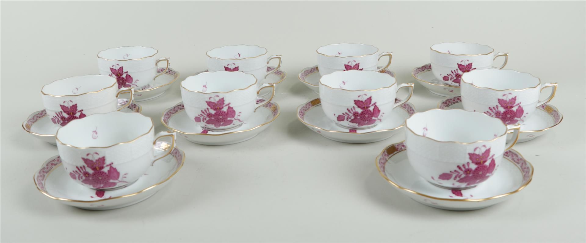 A set of ten teacups and saucers in Apponyipink decor. Herend, 20th century.