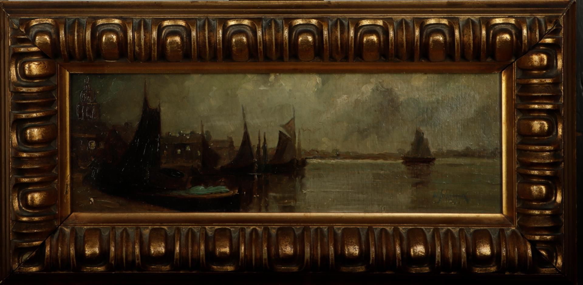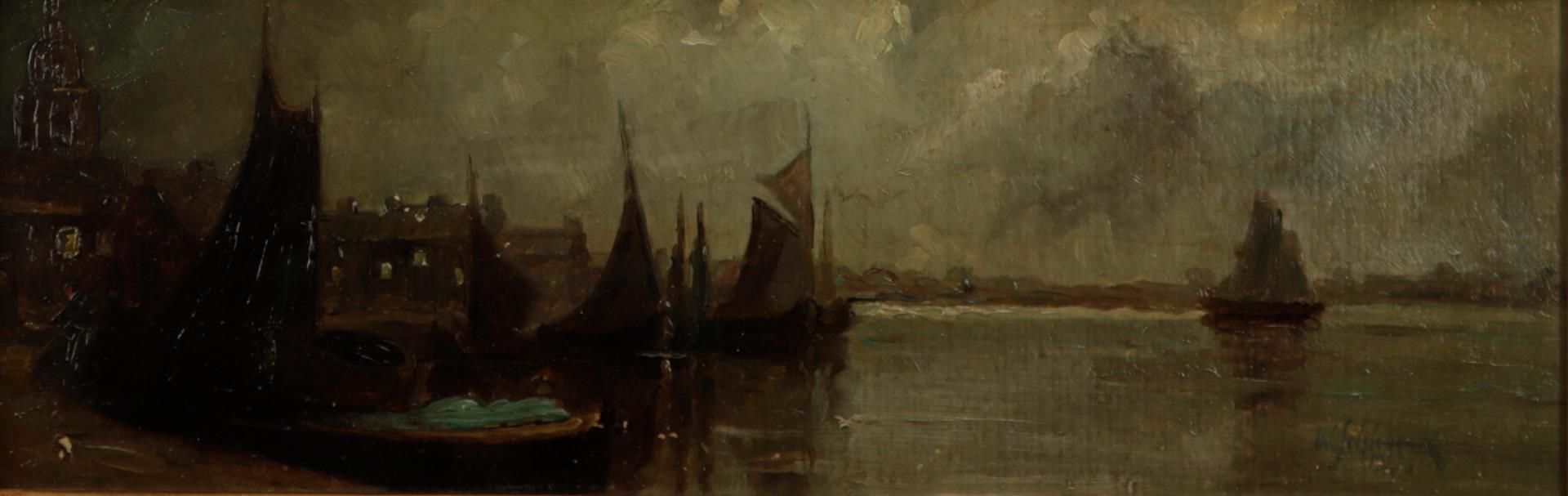 Wilhelm August Schiebeck(XIX-XX), Ships in a harbour at night, signed, and...