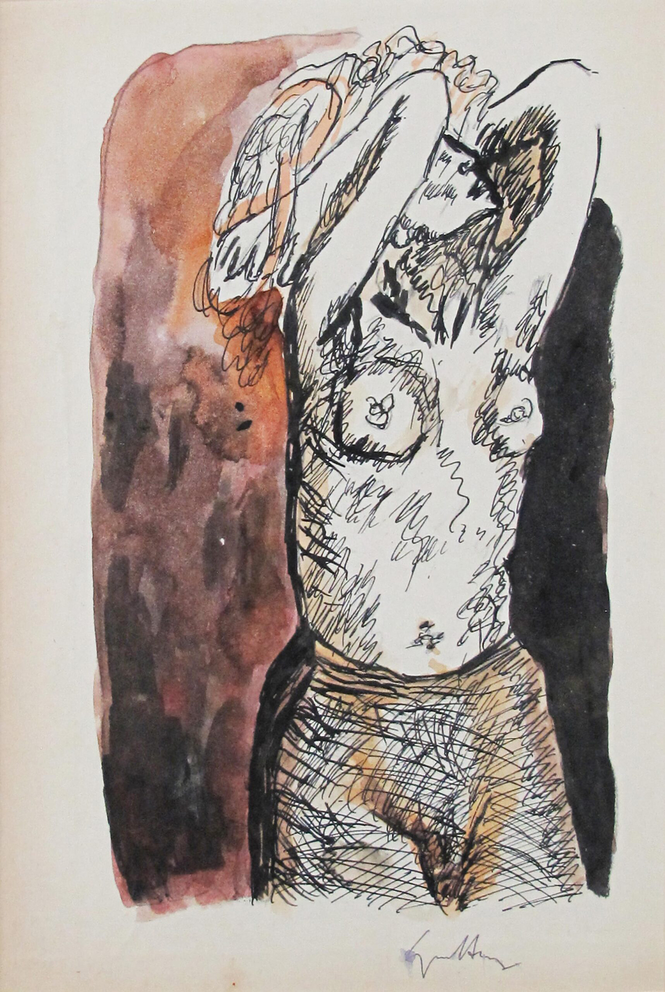 Renato Guttuso (Bagheria 1911 - Roma 1987) Nudo China e acquerello su carta...