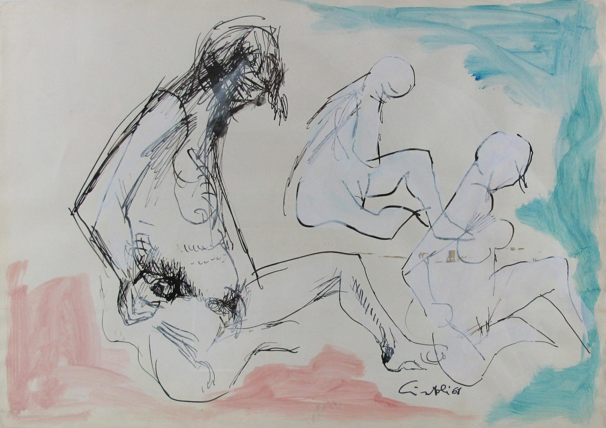 Claudio Cintoli (Imola 1935 - Roma 1978) Nudi Tecnica mista su carta 35x60 cm...