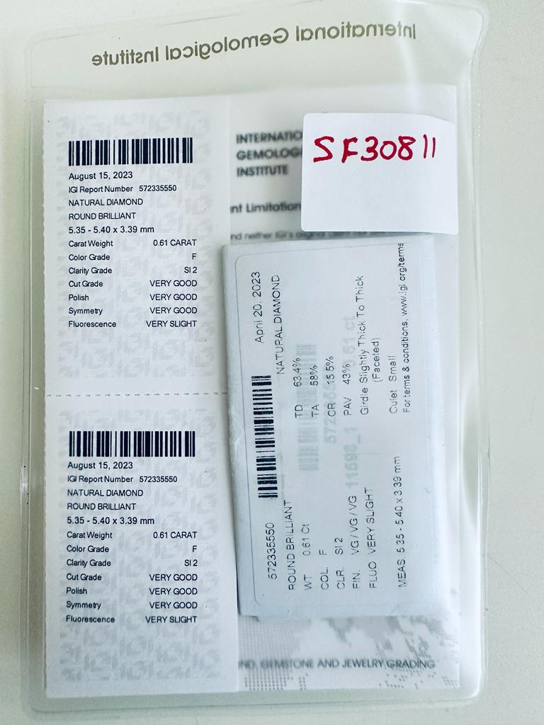 DIAMANTE 0,61 CARATI F - SI2 - IGI - SF30811
