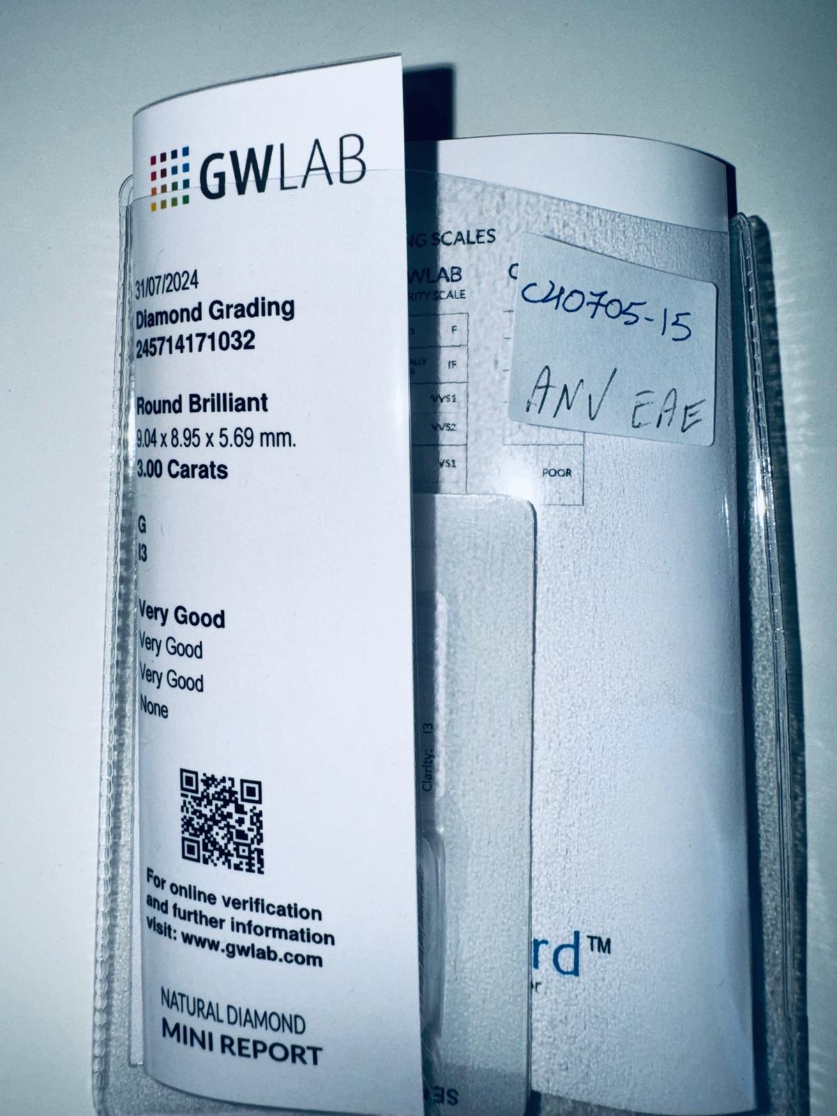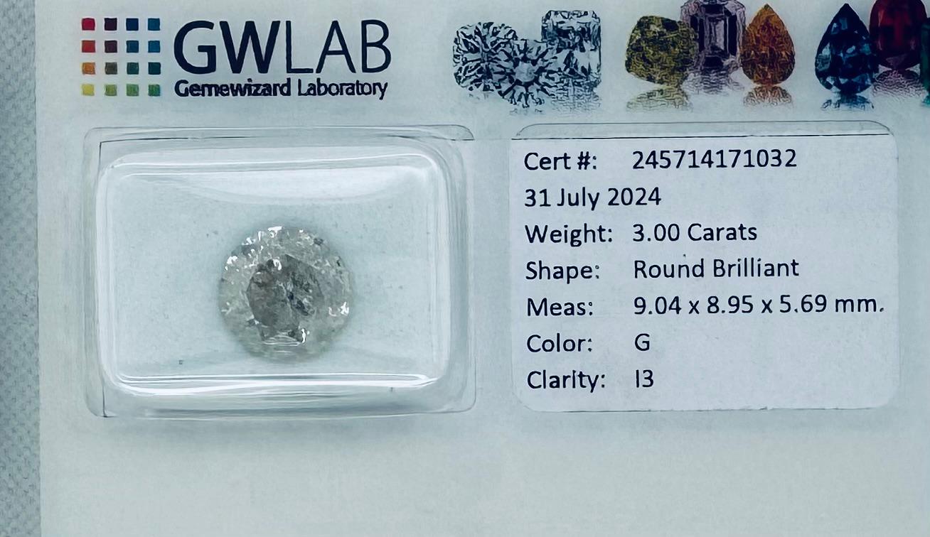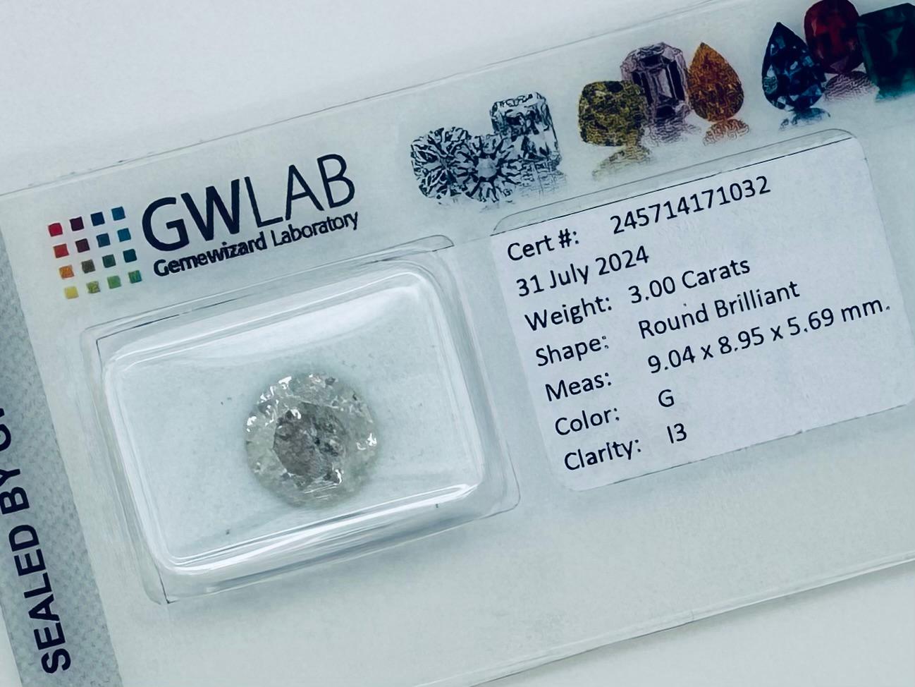 DIAMANTE NATURAL POLISHED 3 CARATI COLORE G - PUREZZA I3 - TAGLIO BRILLANTE - CERTIFICATO GW - C40705-15