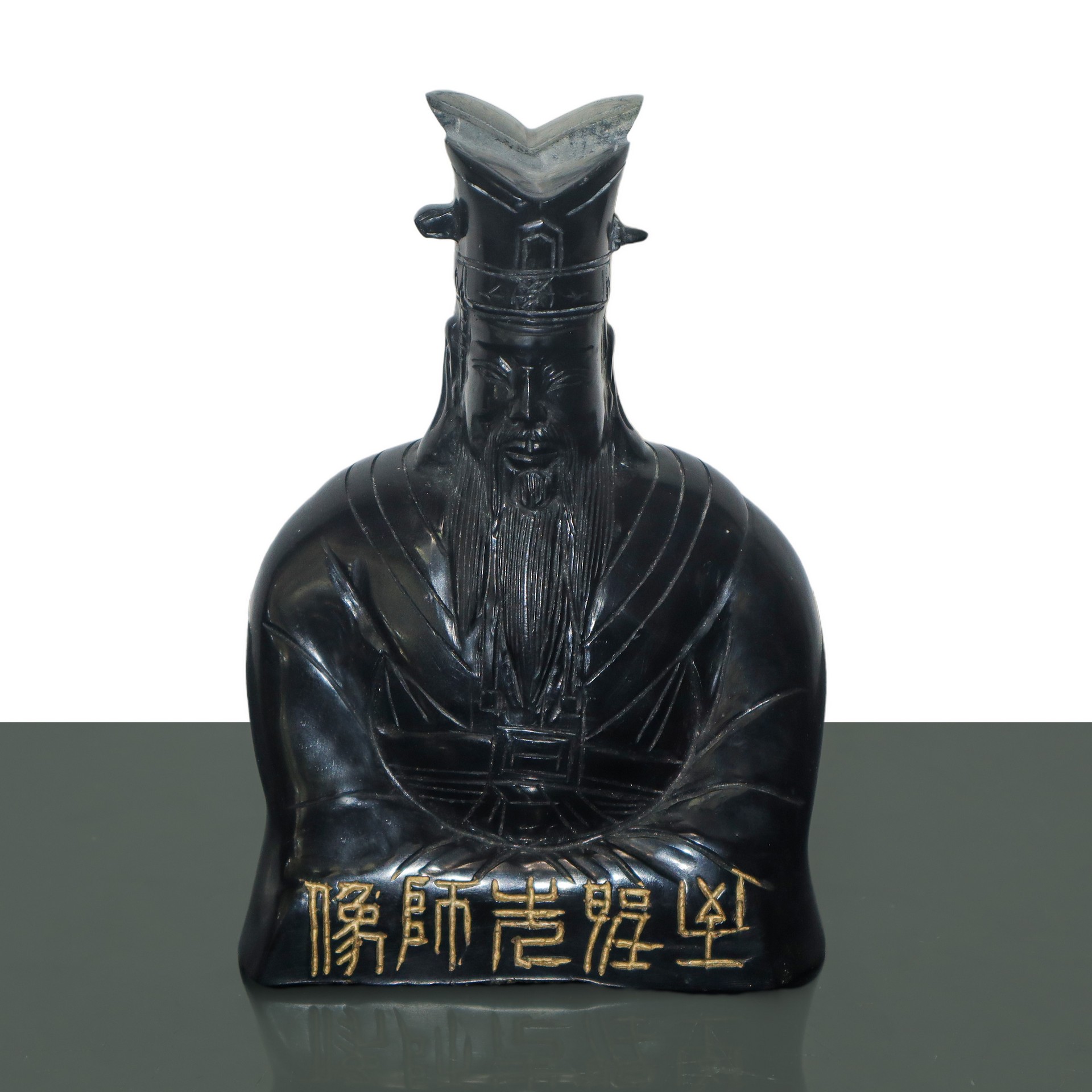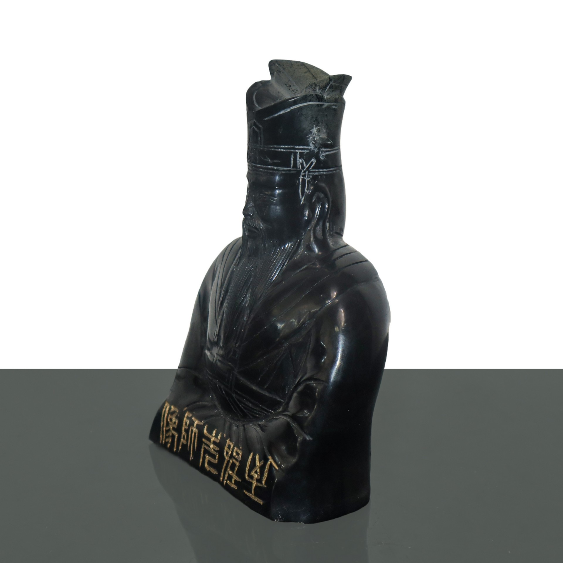 Statuina cinese in ossidiana raffigurante Guan Shang d'Jun