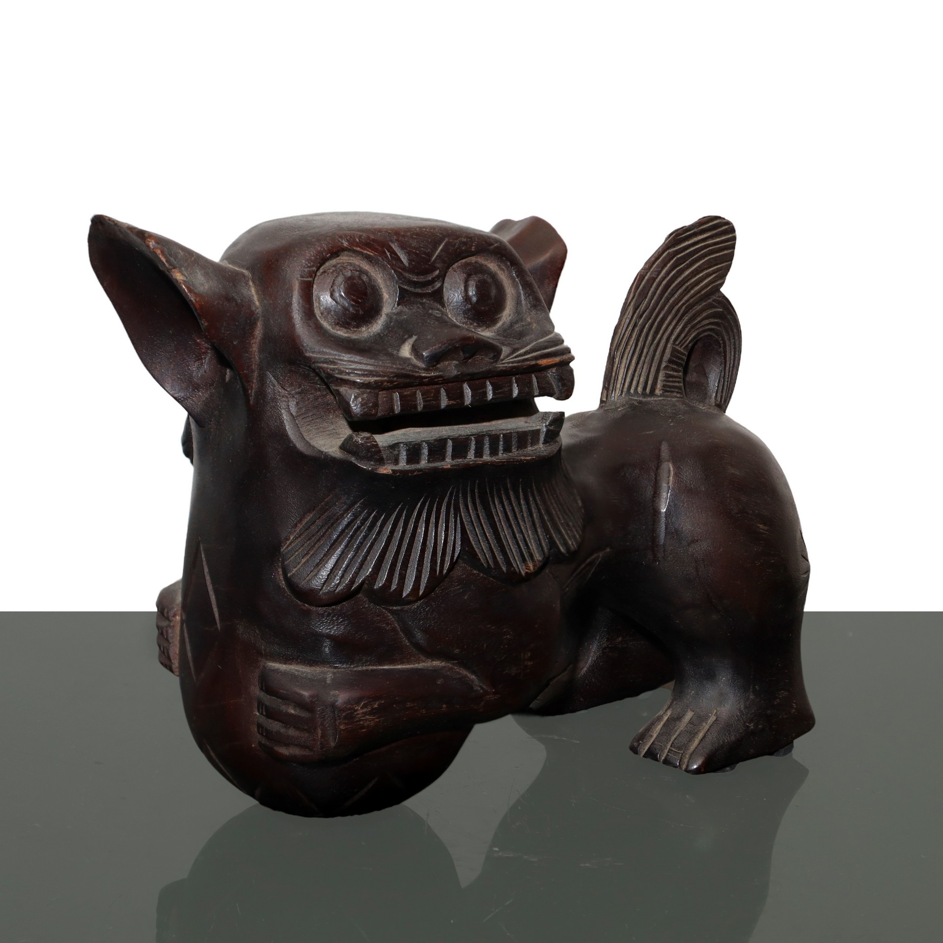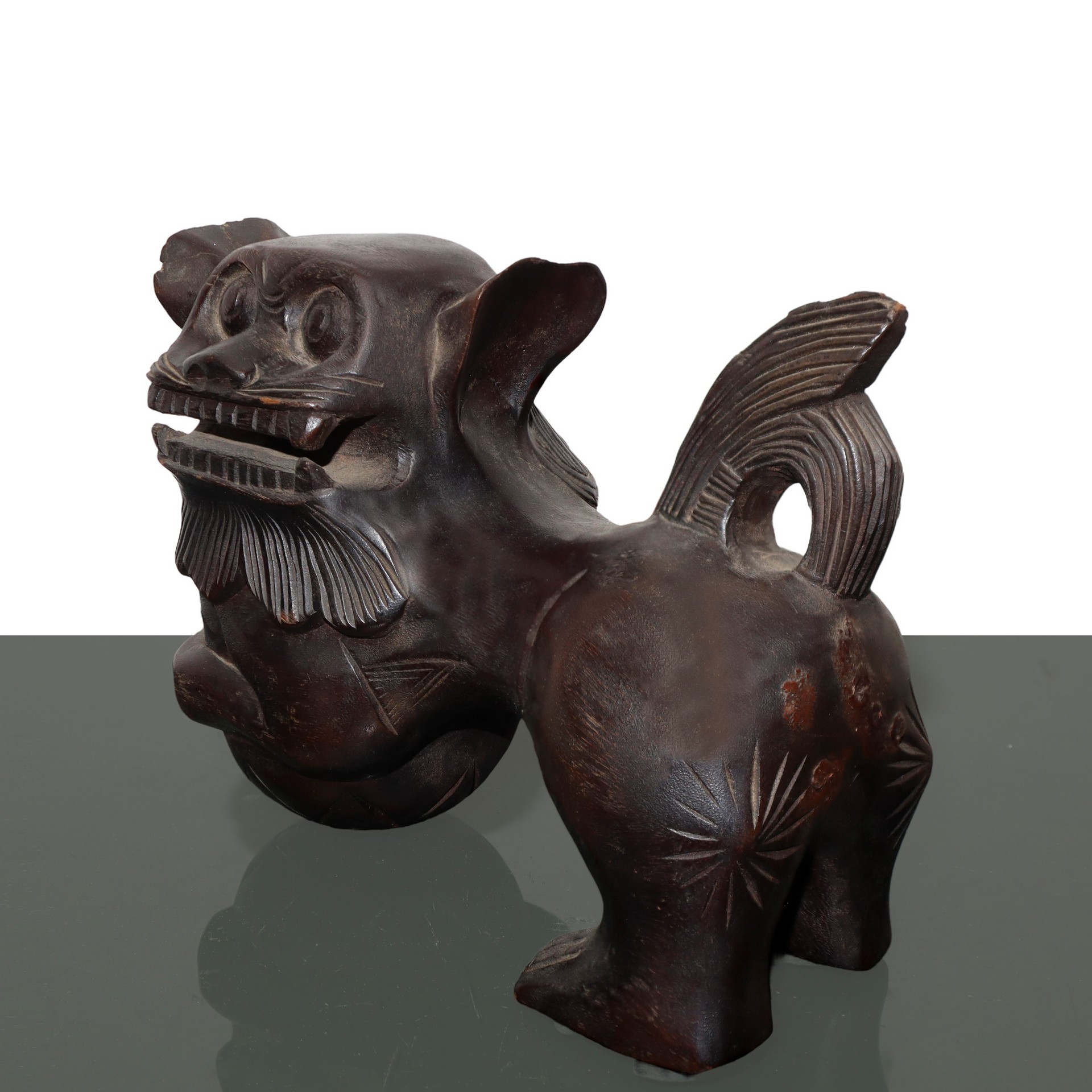 Scultura cinese in legno intagliato di Cane di Fo