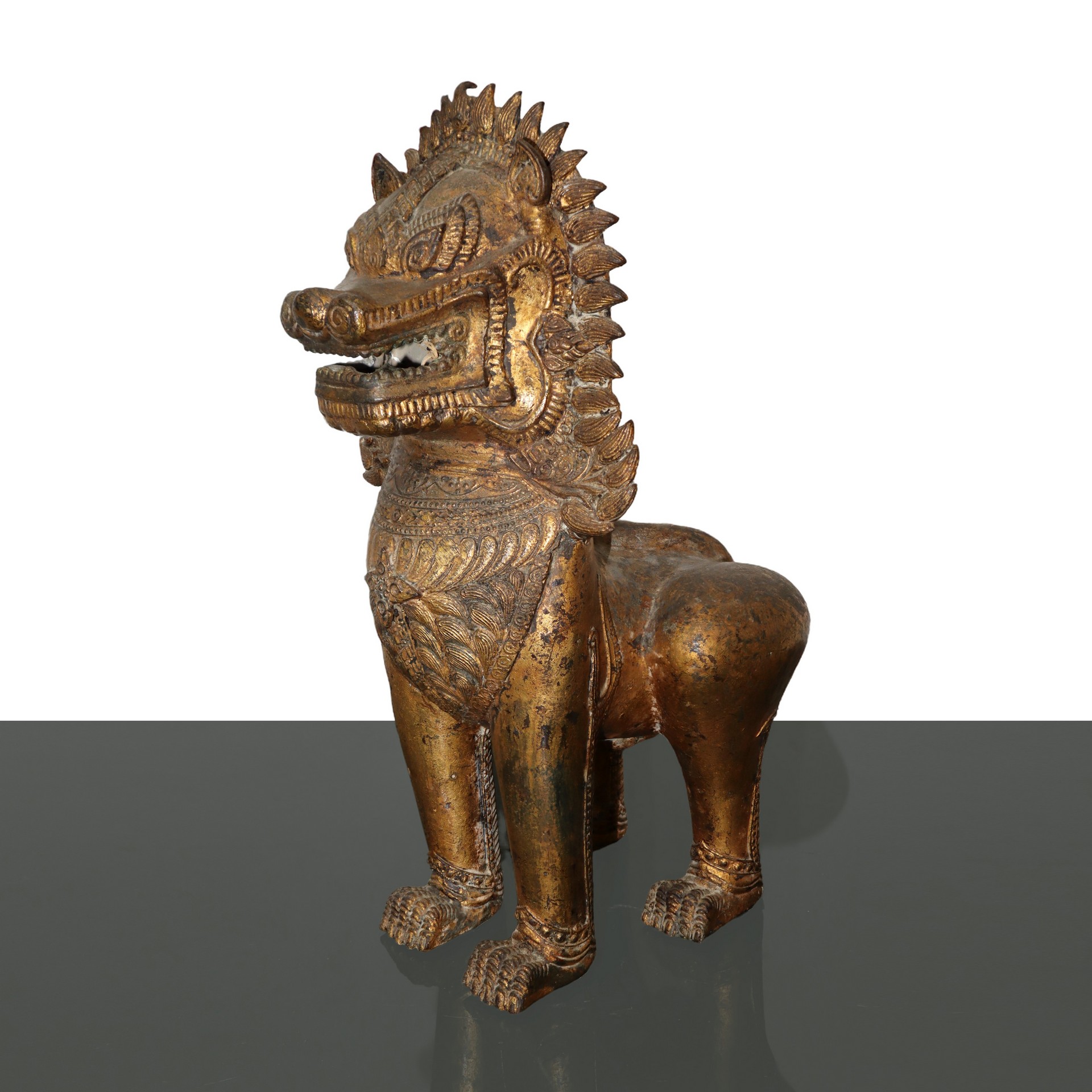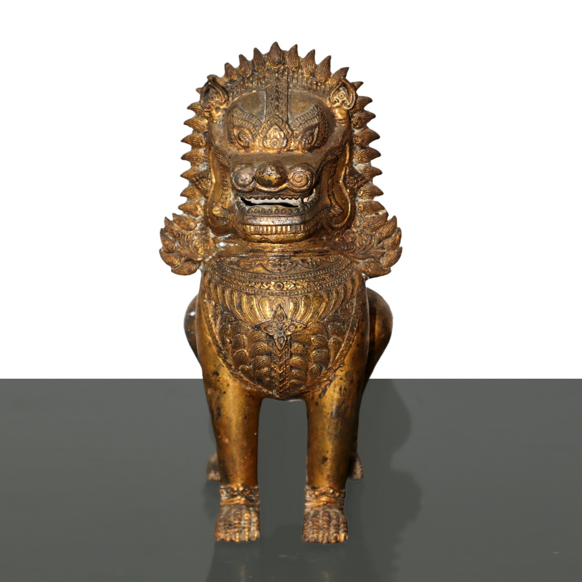 Scultura orientale di animale chimerico H cm 32x18.5 Bronzo dorato.Bronzo dorato.