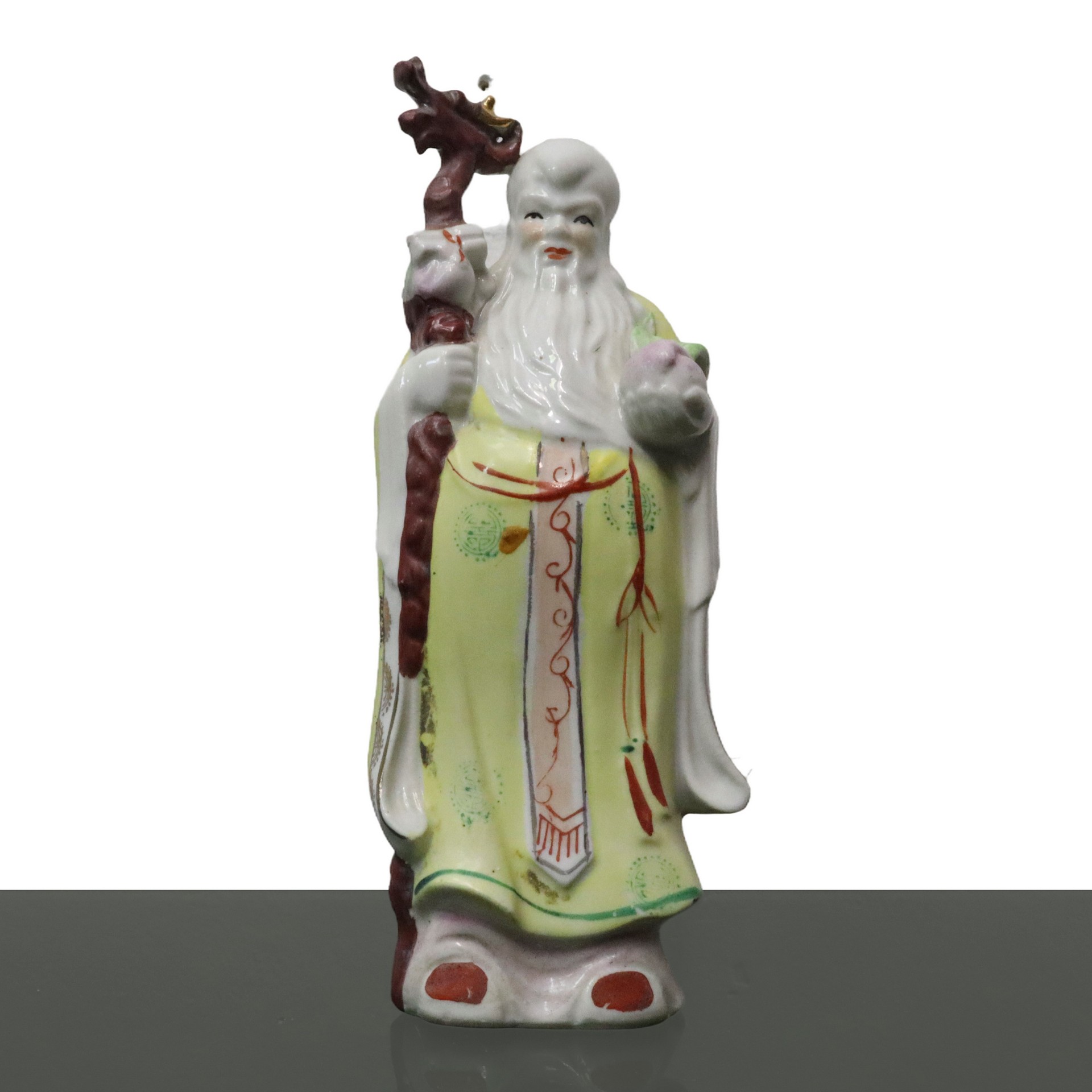 Coppia di statuette cinesi in porcellana H cm 20.3x9.5 Coppia di statuette cinesi in porcellana dipinte a mano. Raffigurano due uomini in abiti tradizionali cinesi che reggono con le mani un ramo fiorito e un bastone dalla forma di dragone. Carattere cinese presente in entrambe le basi.Coppia di statuette cinesi in porcellana dipinte a mano. Raffigurano due uomini in abiti tradizionali cinesi che reggono con le mani un ramo fiorito e un bastone dalla forma di dragone. Carattere cinese presente in entrambe le basi.