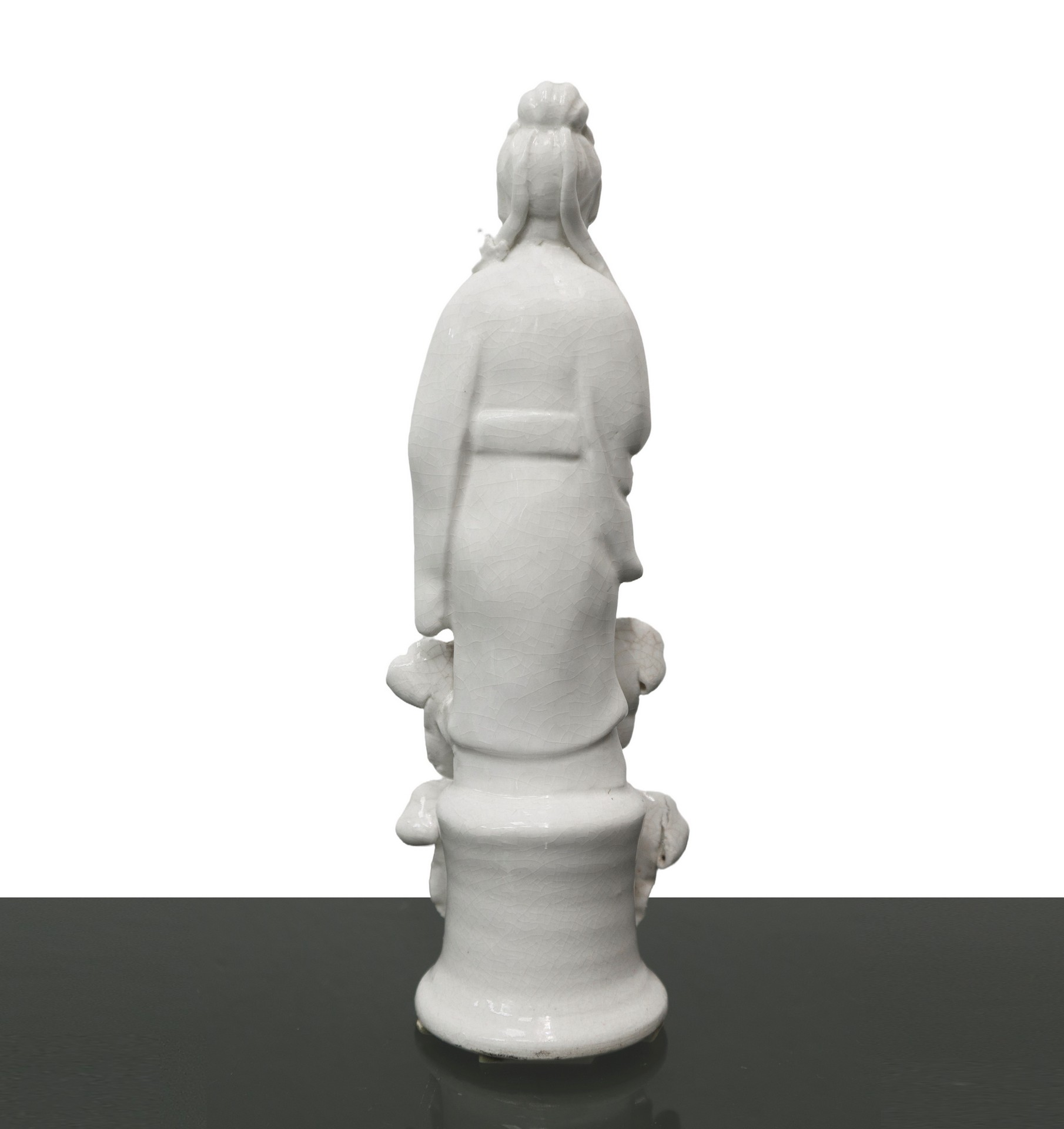 Tre statuine cinesi in porcellana bianca H cm 24, h cm 22, h cm 21 Tre statuine in porcellana bianca cinese due che raffigurano Guanyin, la dea marina della misericordia e una che raffigura un vacchio saggio. Le statuine hanno tre misure diverse. La più grande ha alcune dita scheggiate e ha inciso il numero 44 al suo interno. La statuina di più piccole dimensioni ha un carattere cinese in colore rosso alla base. La figura del saggio presenta una minima rottura.Tre statuine in porcellana bianca cinese due che raffigurano Guanyin, la dea marina della misericordia e una che raffigura un vacchio saggio. Le statuine hanno tre misure diverse. La più grande ha alcune dita scheggiate e ha inciso il numero 44 al suo interno. La statuina di più piccole dimensioni ha un carattere cinese in colore rosso alla base. La figura del saggio presenta una minima rottura.