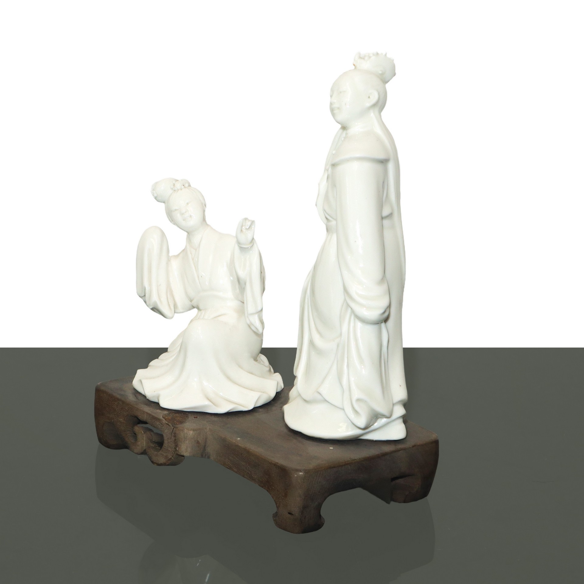 Statuine in porcellana bianca cinese, 20° secolo con base cm 19X14 Su base in legnoSu base in legno