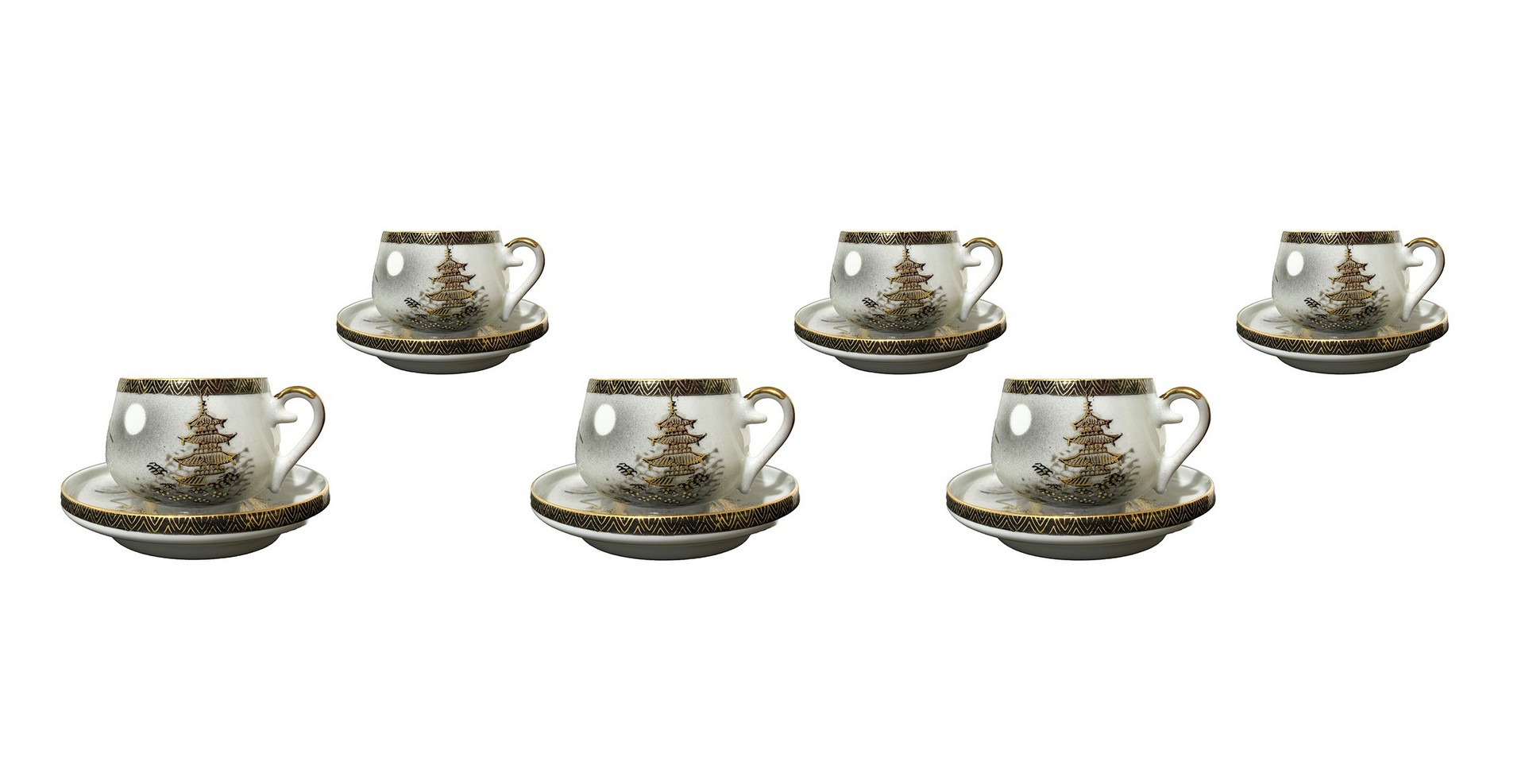 Servizio Satsuma “Kyoto Handicraft center” Set 6 tazzine con piattinoSet 6 tazzine con piattino