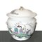 Zuppiera in porcellana bianca cinese dipinta a mano con decorazione di donne e bambini in giardino fiorito scritte in caratteri cinesi. H cm 18.5x18.8 Quattro piccoli manici. Coperchio decorato e con pomello. Timbro con caratteri cinesi e timbro in cera lacca sul fondo.Quattro piccoli manici. Coperchio decorato e con pomello. Timbro con caratteri cinesi e timbro in cera lacca sul fondo.