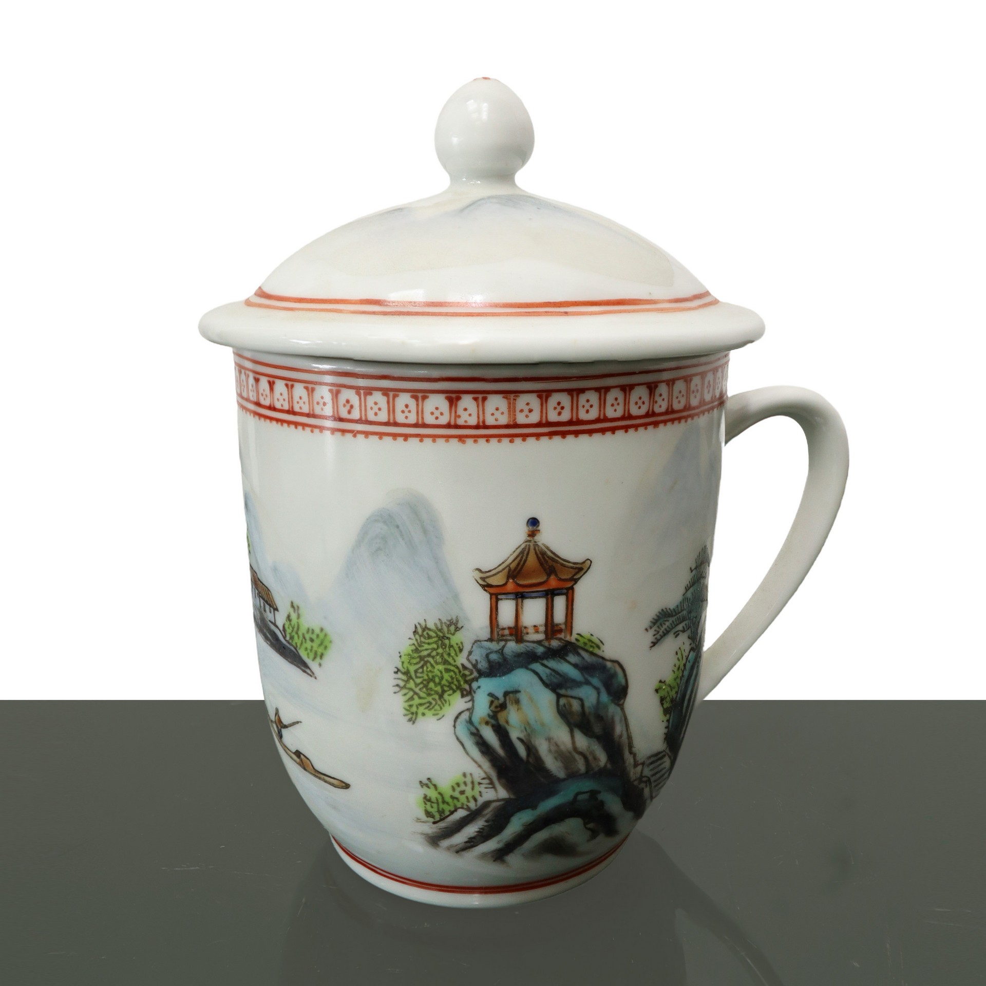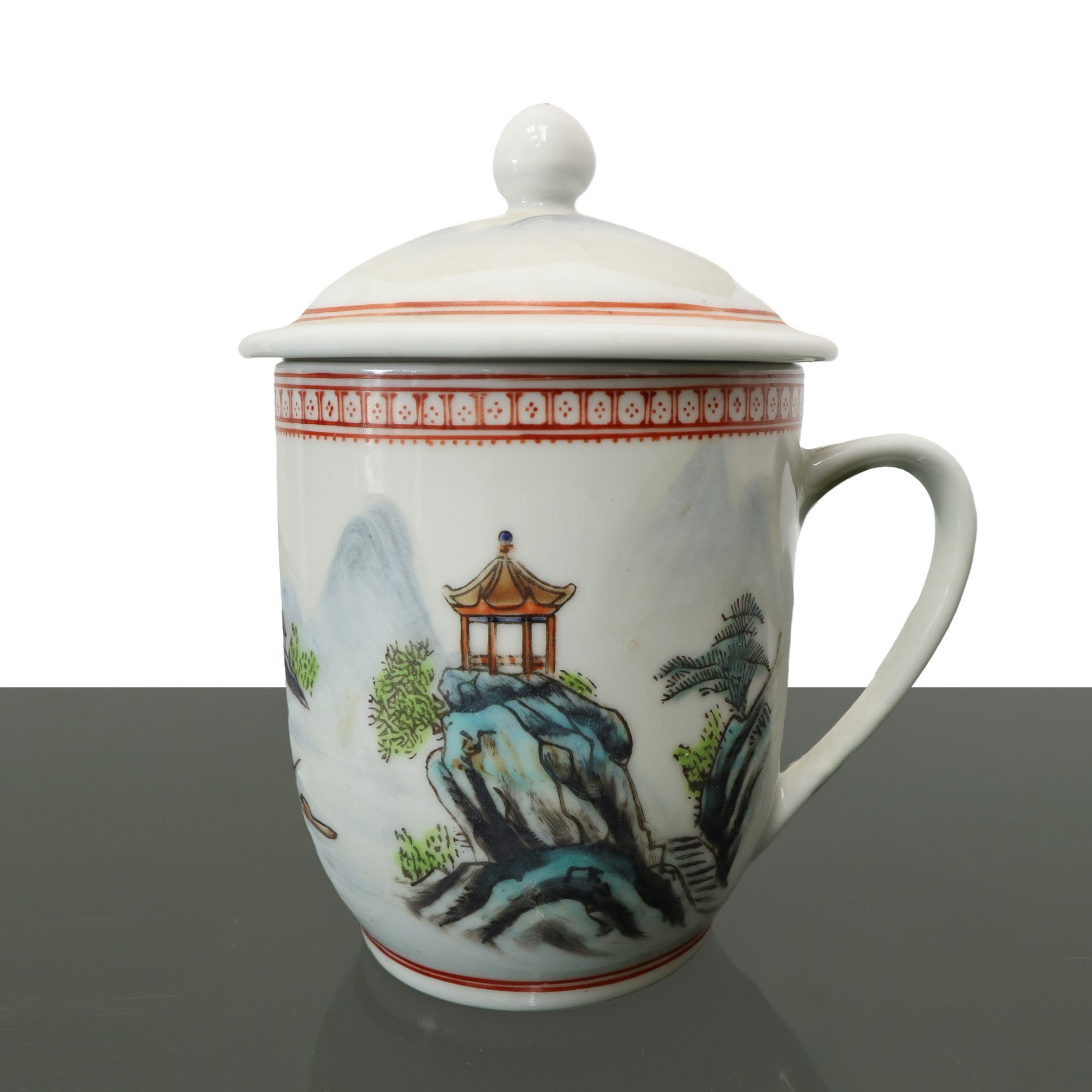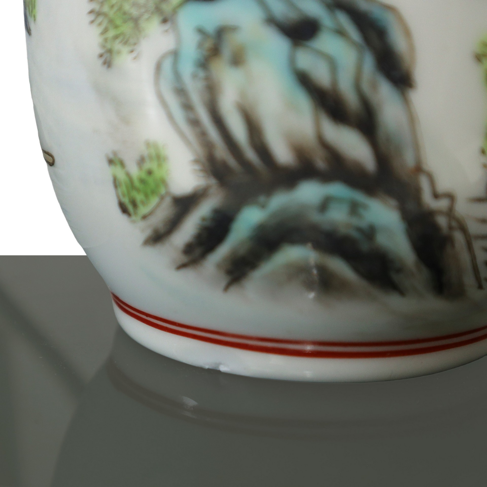 Tre tisaniere in porcellana bianca con raffigurazioni di paesaggi H cm 14x12.5 Marchio alla baseMarchio alla base