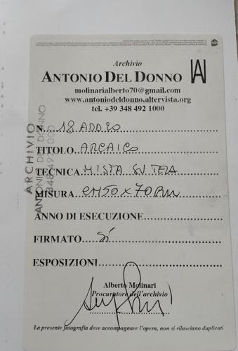 Antonio Del Donno (Benevento 1927 – 2020). Arcaico. Tecnica mista su tela. Firmato al verso.