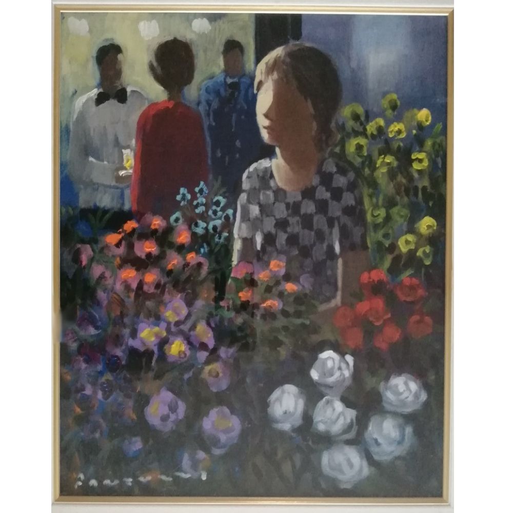 Eliano Fantuzzi (Modena 1909 - Verona 1987). Fioraia. Olio su tela. Firmata in basso a sinistra Fantuzzi. Al verso firmato Fantuzzi ed etichetta di garanzia ed autentica Il castello, Adria. Cm. 50x40.