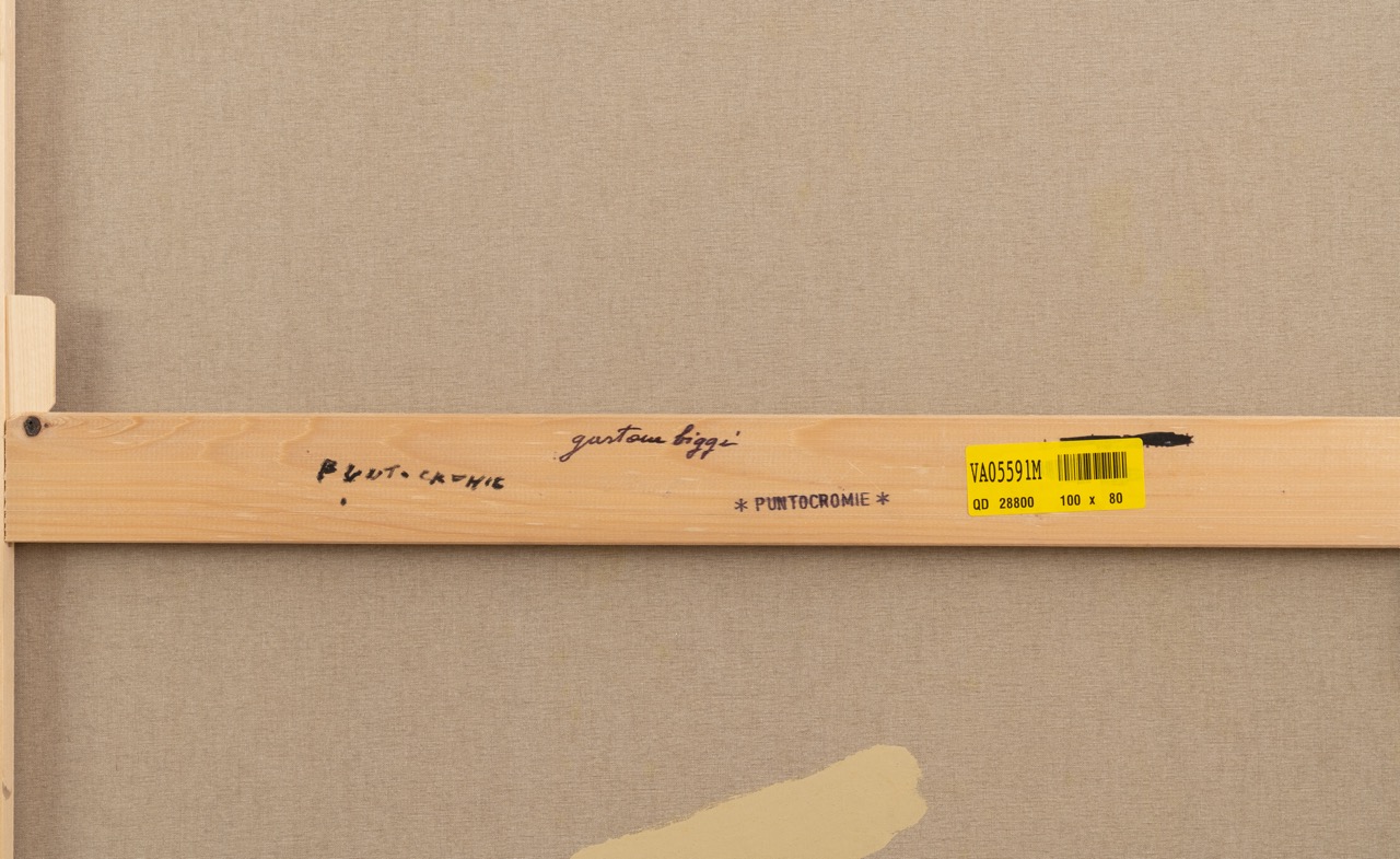 Gastone Biggi (Roma 1925 - Tordenaso, Langhirano, 2014). Puntocromie, Idilio di libeccio, 2009. Industrial paint su tela. Autentica su fotografia a firma dell'artista. Archiviato al n. 5210 in data 12/07/2019 della Fondazione Gastone Biggi. Sarà inserita nel volume integrativo Gastone Biggi - Catalogo ragionato dei dipinti a cura di A. C. Quintavalle e G. Bianchino. Ed. Skira, che la Fondazione si riserva di realizzare. Cm 100x80.