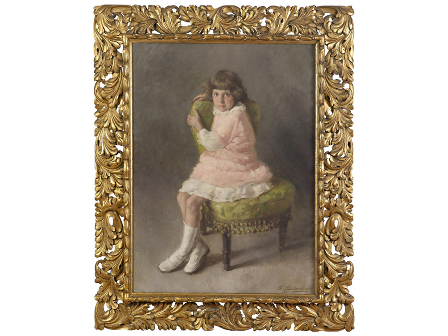 F. Pietrantonio (XIX-XX secolo) Ritratto di bambina Olio su tela Firmato e datato 1921 Misure 130x95 cm