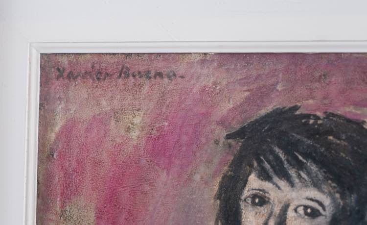 Xavier Bueno (Vera de Bidasoa 1915 - Fiesole 1979). Senza titolo. Olio su tavola. Cm. 30,5x40,5. Firmata in alto a sinistra Xavier Bueno. Al verso opera firmata Xavier Bueno. Al verso etichetta con firma Raccolta Giraldi, Livorno-Firenze. Al verso etichetta Saletta Mino da Fiesole con relativa firma. Autentica su fotografia a firma Remo Bianco.