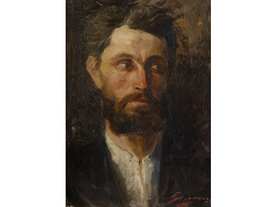 Firma illeggibile (XX secolo) Ritratto maschile Olio su cartoncino Misure 47.5x34 cm