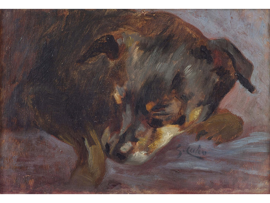 Gerolamo Calca (Rovato 1878-1957) Cagnolino Olio su cartoncino Misure 16x22.3 cm