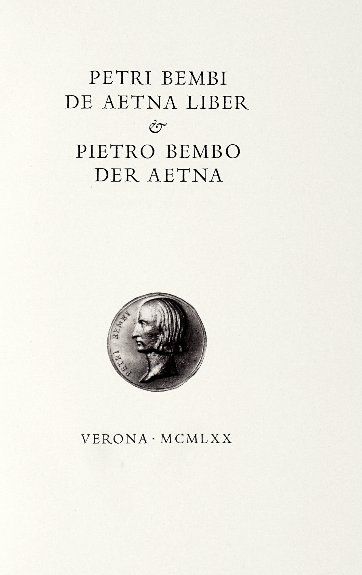 Bembo Pietro, De Aetna Liber et Pietro Bembo Der Aetna. Verona: Officina Bodoni, 1970.