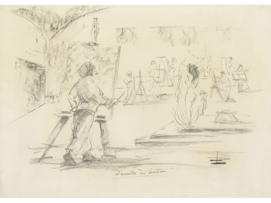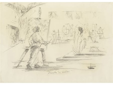 Anonimo (XX secolo) Scuola di pittura Matita su carta Misure 49x69 cm