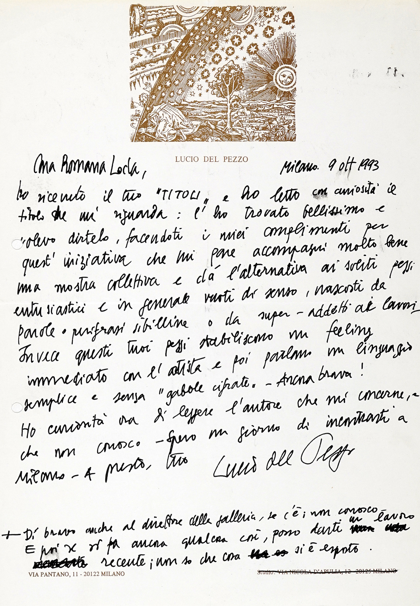 Loda Romana, Curiosa raccolta di pubblicazioni, manifesti, inviti e scritti ciclostilati di Romana Loda, e un'interessante raccolta di corrispondenze tra la Gallerista e artisti del calibro di del Pezzo, Parmiggiani, Ori, della Casa, Cerati, Skuber e molti altri. XX secolo.