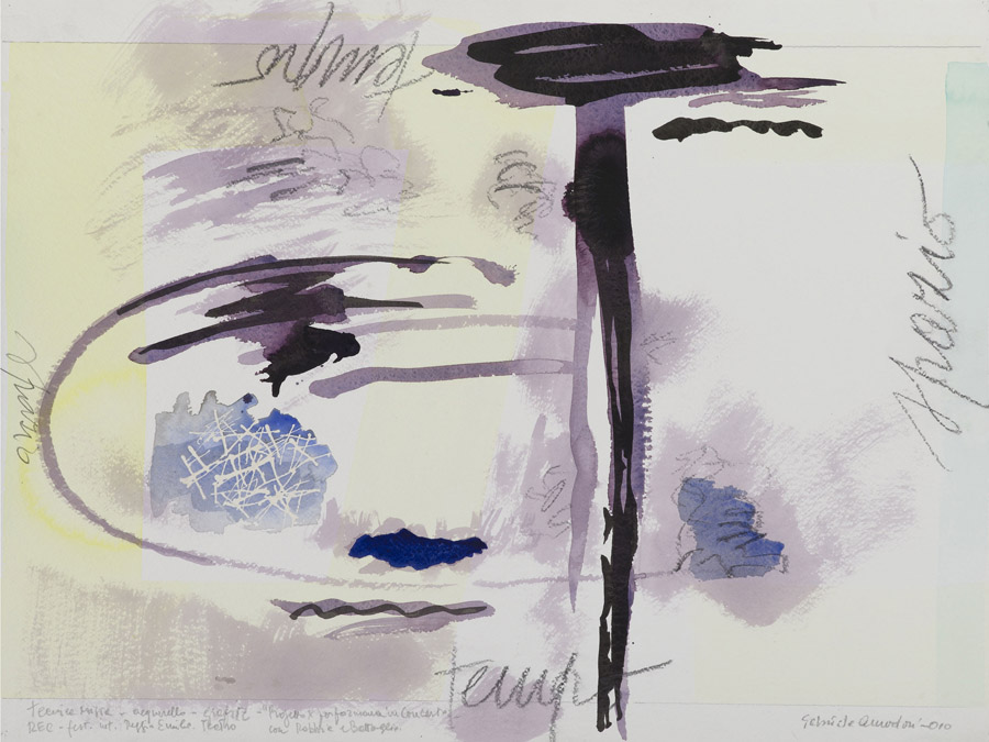 Gabriele Amadori (Ferrara 1945) Progetto per performance in concerto con Stefano Battaglia e Michele Rabbia Tecnica mista, acquarello e grafite Firmato e datato 2010 Senza cornice Misure 58x76 cm